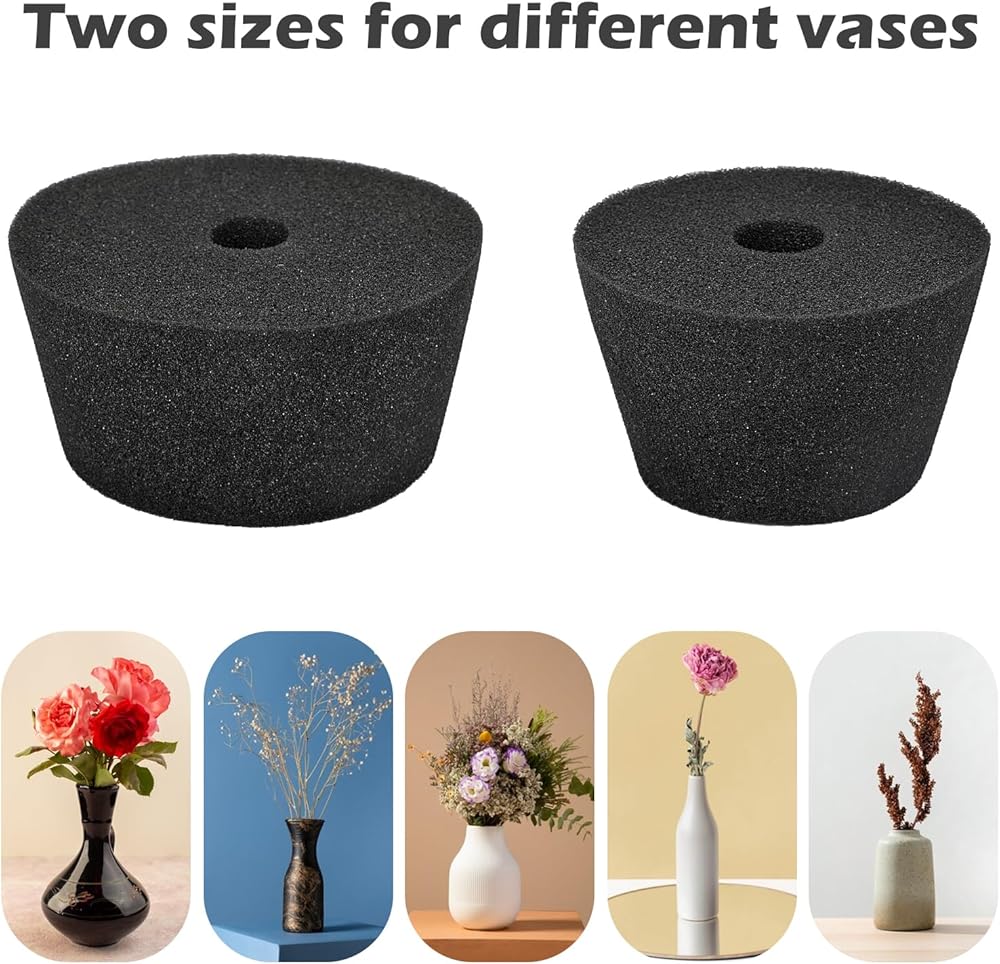 1.Product details - Grave Vase Inserts come in a 1 set of 6 pieces.3 pieces large sizes, upper diameter 4.4 inch, lower diameter 3.5 inch, height 2 inch. 3 pieces small sizes, upper diameter 3.5 inch, lower diameter 2.36 inch, height 2 inch.The small size fits into a vase with a minimum diameter of 2 inch. The large size can be placed in a vase with a minimum diameter of 3.5inch.