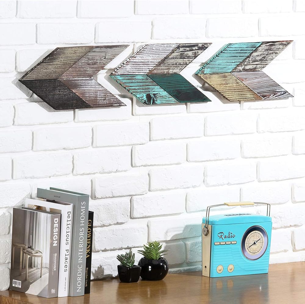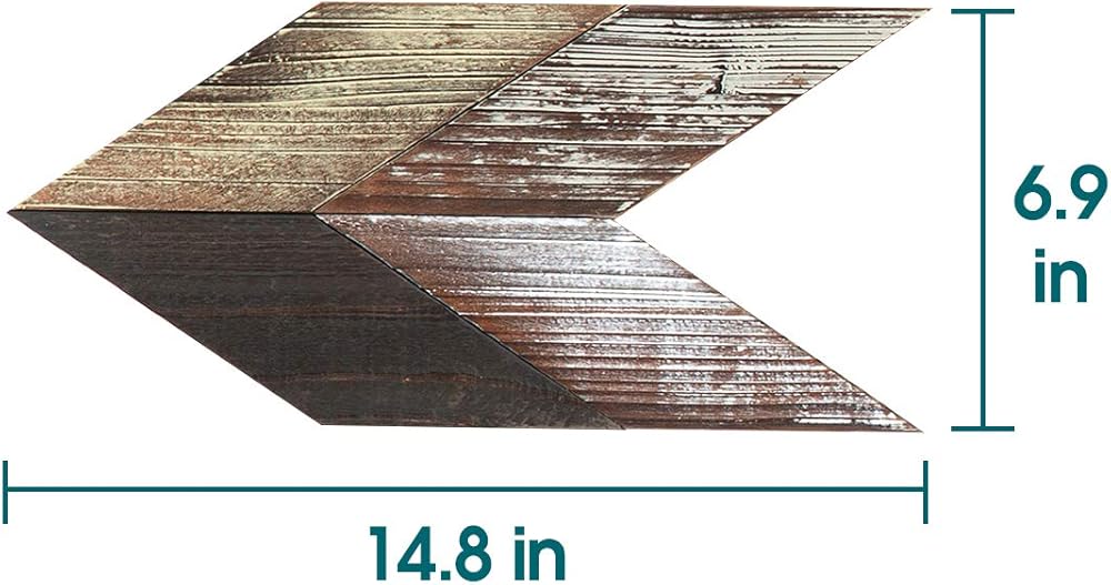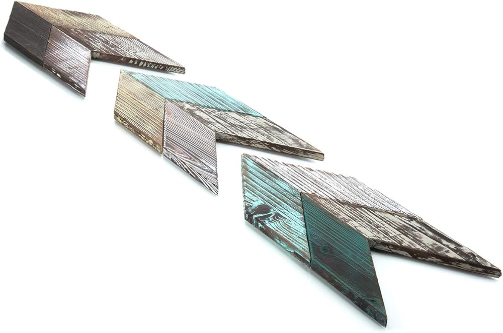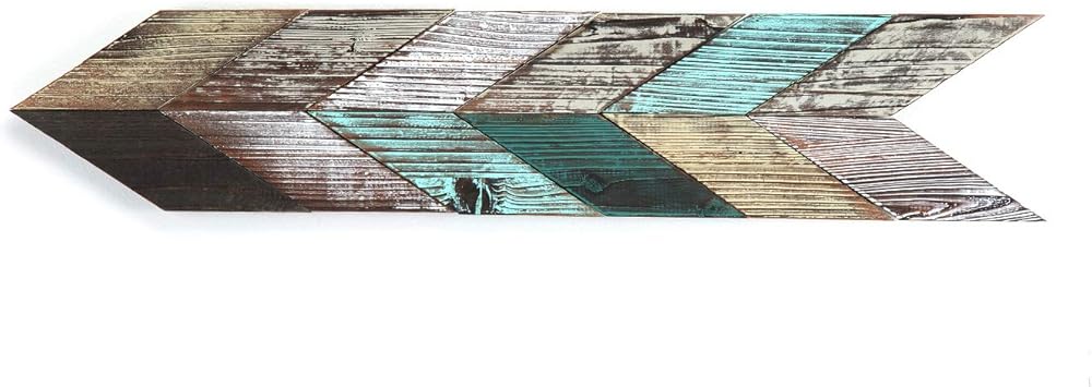 [تصميم خشبي ريفي] تم تشطيب سطح أسهم الشيفرون الخشبية وطلائها باللون الفيروزي والبني والأبيض، وهو جذاب للغاية بصريًا.