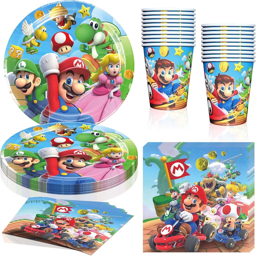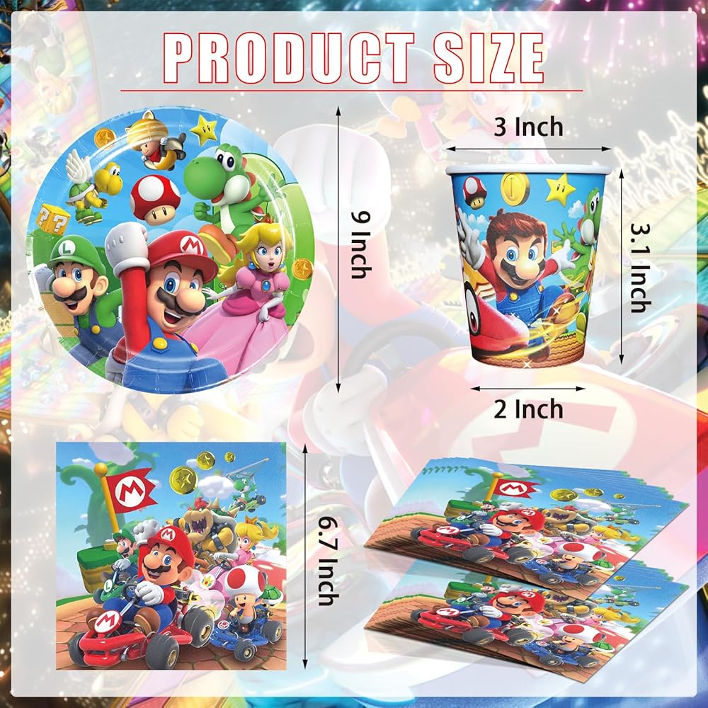 مجموعة أدوات المائدة: مجموعة أدوات طعام ماريو لعيد الميلاد تتضمن 20 قطعة من الأطباق مقاس 9 بوصة، و20 قطعة منديل (6.7 × 6.7 بوصة)، و20 قطعة من الأكواب الورقية، تناسب احتياجات حفلات أعياد الميلاد.