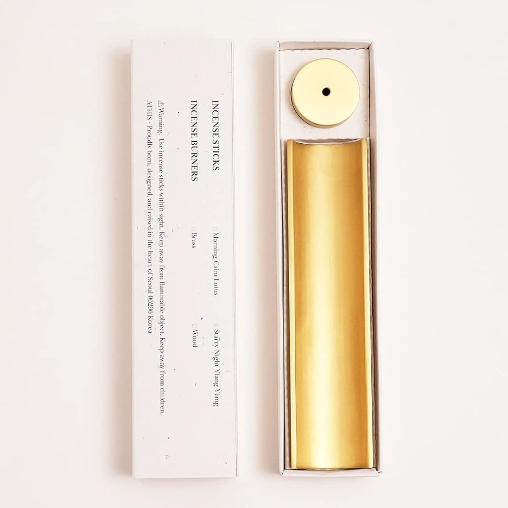 حامل بخور نحاسي من ATHIS-Seoul، مبخرة جمالية مع صائد رماد (5.5 بوصة) - صينية أنيقة للتأمل واليوجا وجلسات السبا