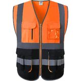 مرئية للغاية مع موجة عاكسة 360 درجة: سترة الأمان مرئية للغاية مع أربعة أشرطة عاكسة بعرض 2 بوصة تغطي الخصر والصدر والكتفين والظهر مع موجة ضوئية عاكسة للضوء 360 درجة أثناء العمل تحت ضوء النهار أو بيئة الإضاءة المنخفضة .
