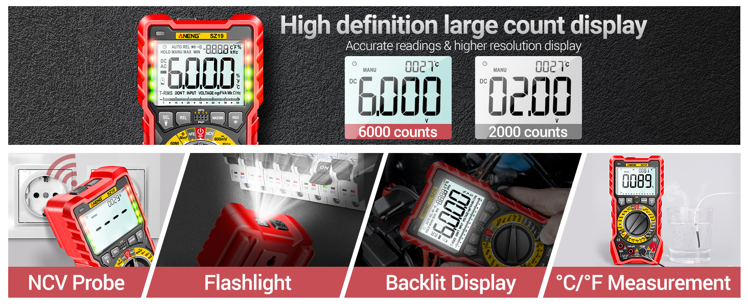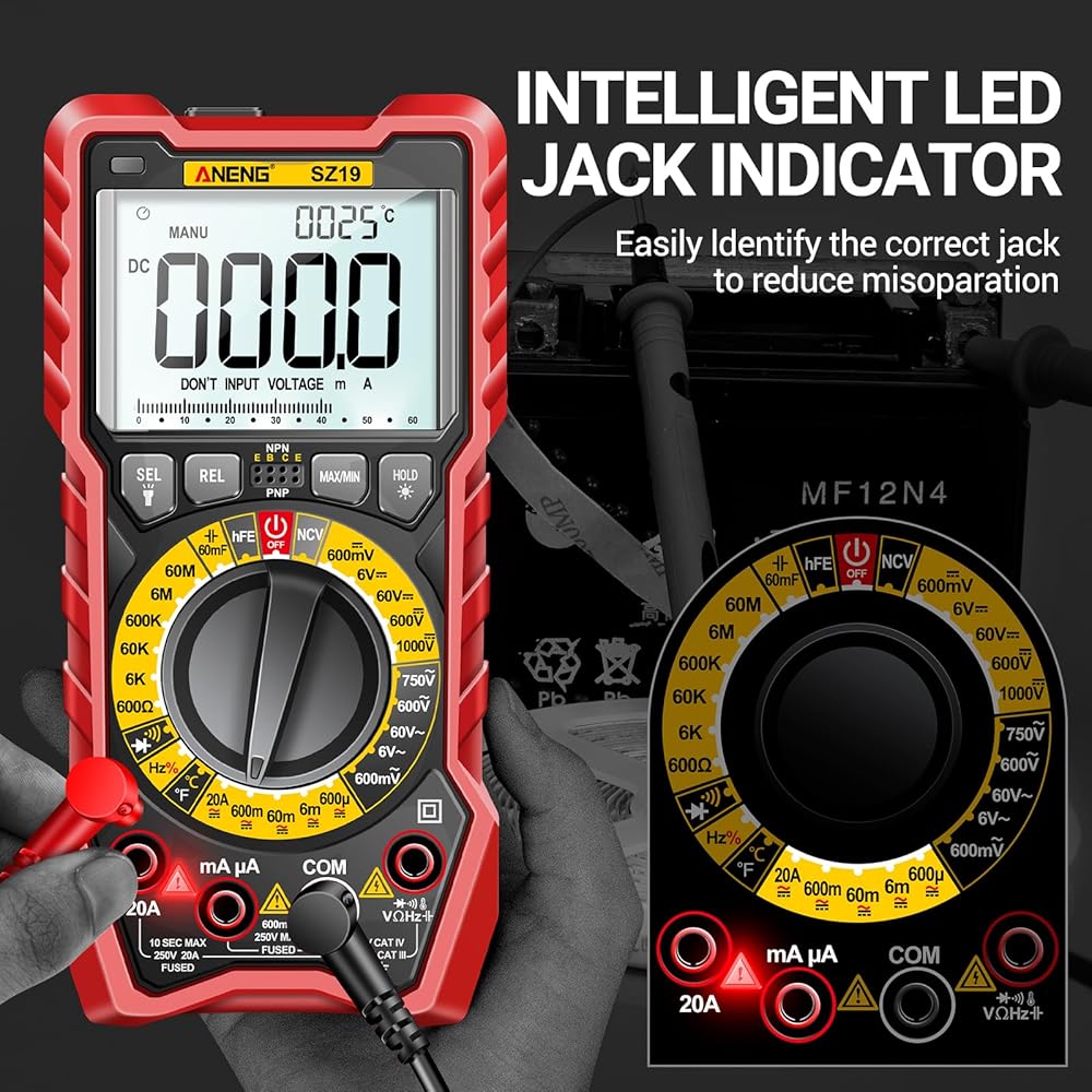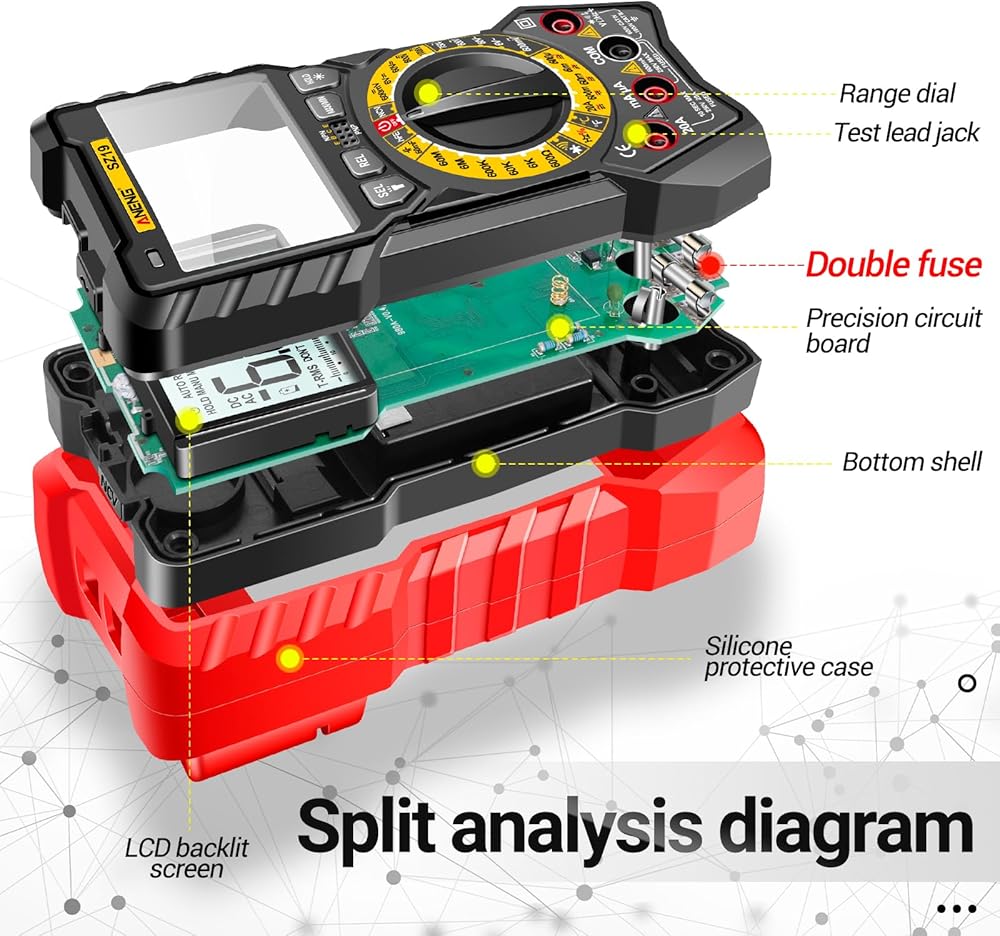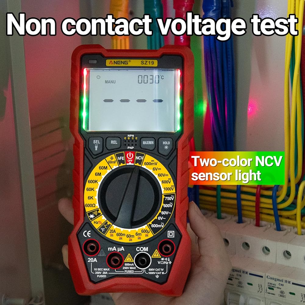【الدقة والمتانة】فولتميتر ANENG مع جهاز اختبار الجهد الكهربي غير اللاصق، يمكنه اكتشاف الجهد الكهربي، وتجنب الصدمات الكهربائية دون لمس أي أسلاك مع منبه الصوت والضوء. أنبوب مصهر سيراميك مدمج مضاد للحرق، وحماية القطبية العكسية، ومؤشر البطارية المنخفض، و حماية الزائد في جميع النطاقات. جهاز القياس الذكي المتعدد مصنوع من مواد مقاومة للحرارة وتصميم غير قابل للانزلاق، ويأتي مع غطاء واقي مطاطي مقاوم للسقوط، والذي يمكنه حماية عدادات الفولت والمقاييس المتعددة، وإطالة عمر الخدمة.