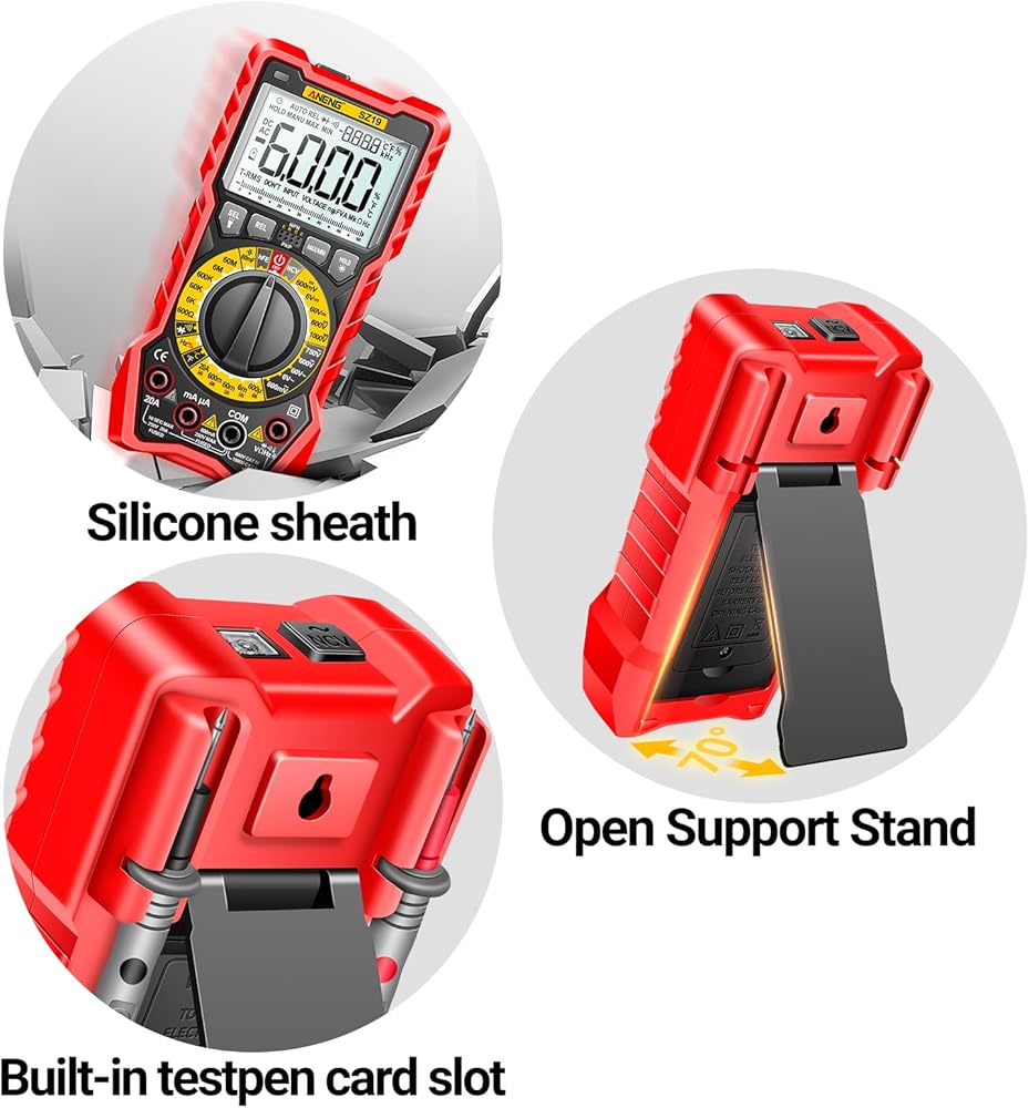 واجهة سهلة الاستخدام: تتميز أجهزة قياس فولت ANENG وأجهزة القياس المتعددة بواجهة بديهية سهلة الاستخدام، حتى للمبتدئين. يمتد الدعامة الخلفية القابلة للسحب حتى 120 درجة، والتي يمكن تعديلها وفقًا للرؤية الفعلية، وحرر يديك أثناء الاختبار.