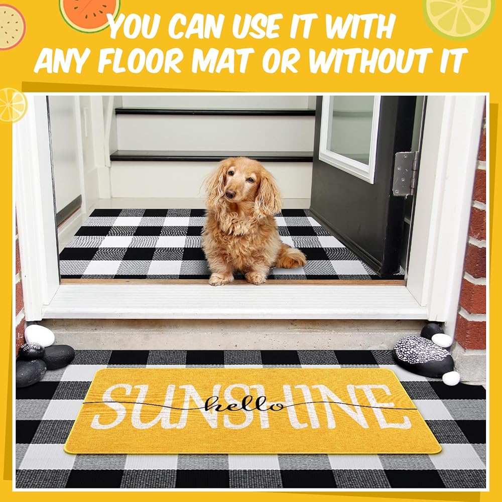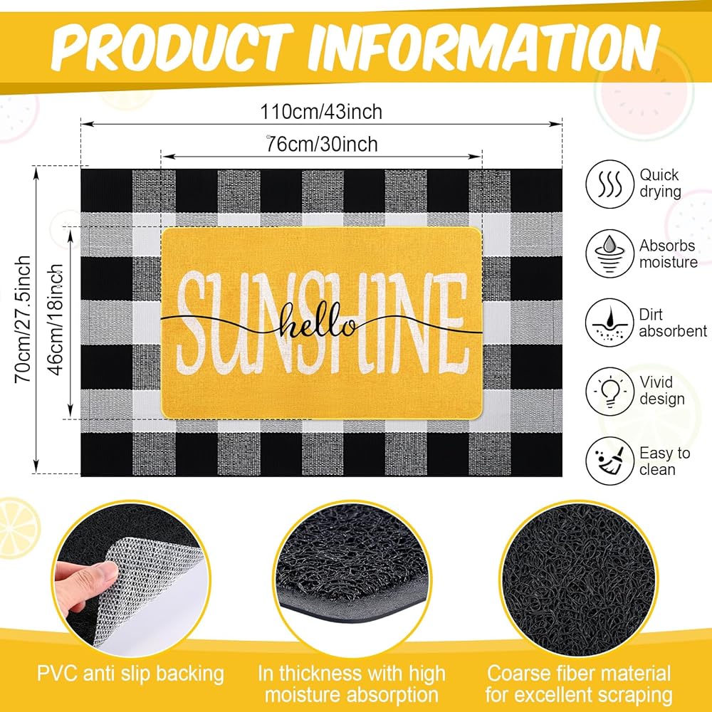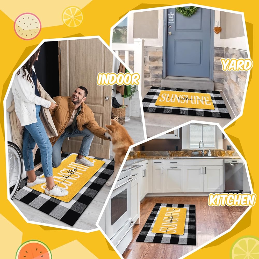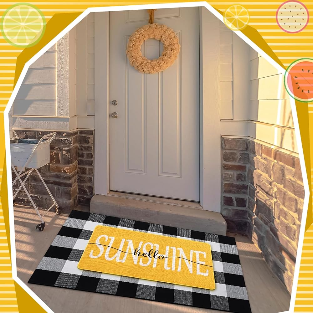 • Nice and Elaborate Combination: you will receive 1 Hello Sunshine doormat and 1 black and white buffalo checkered rug, simple and classic; You can put them together or separately at different entrances to welcome your guests