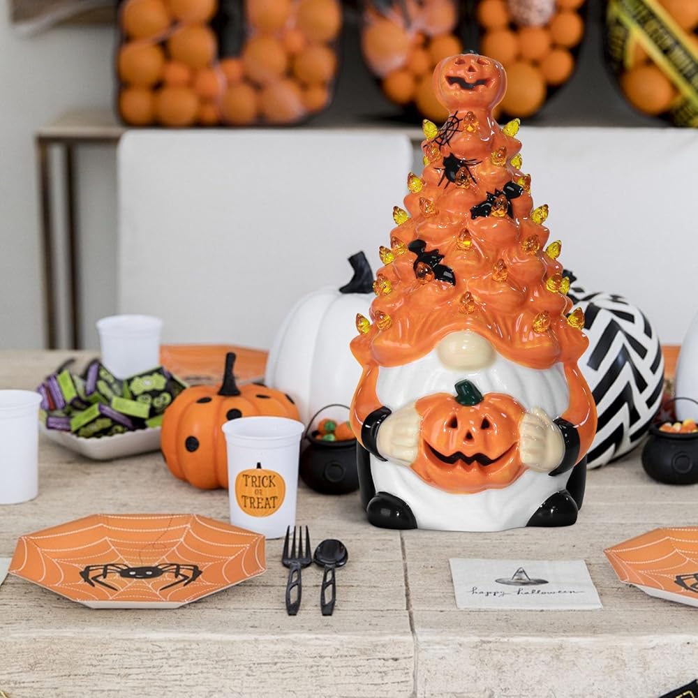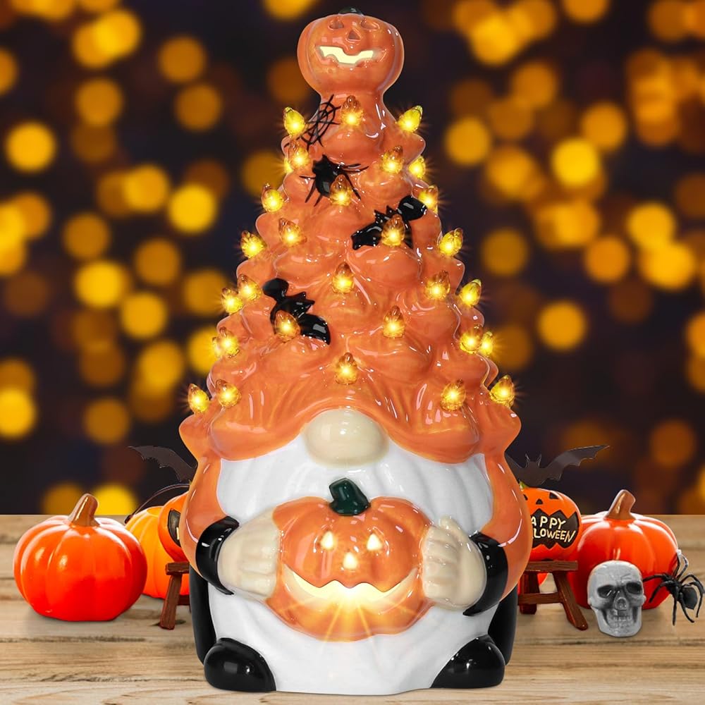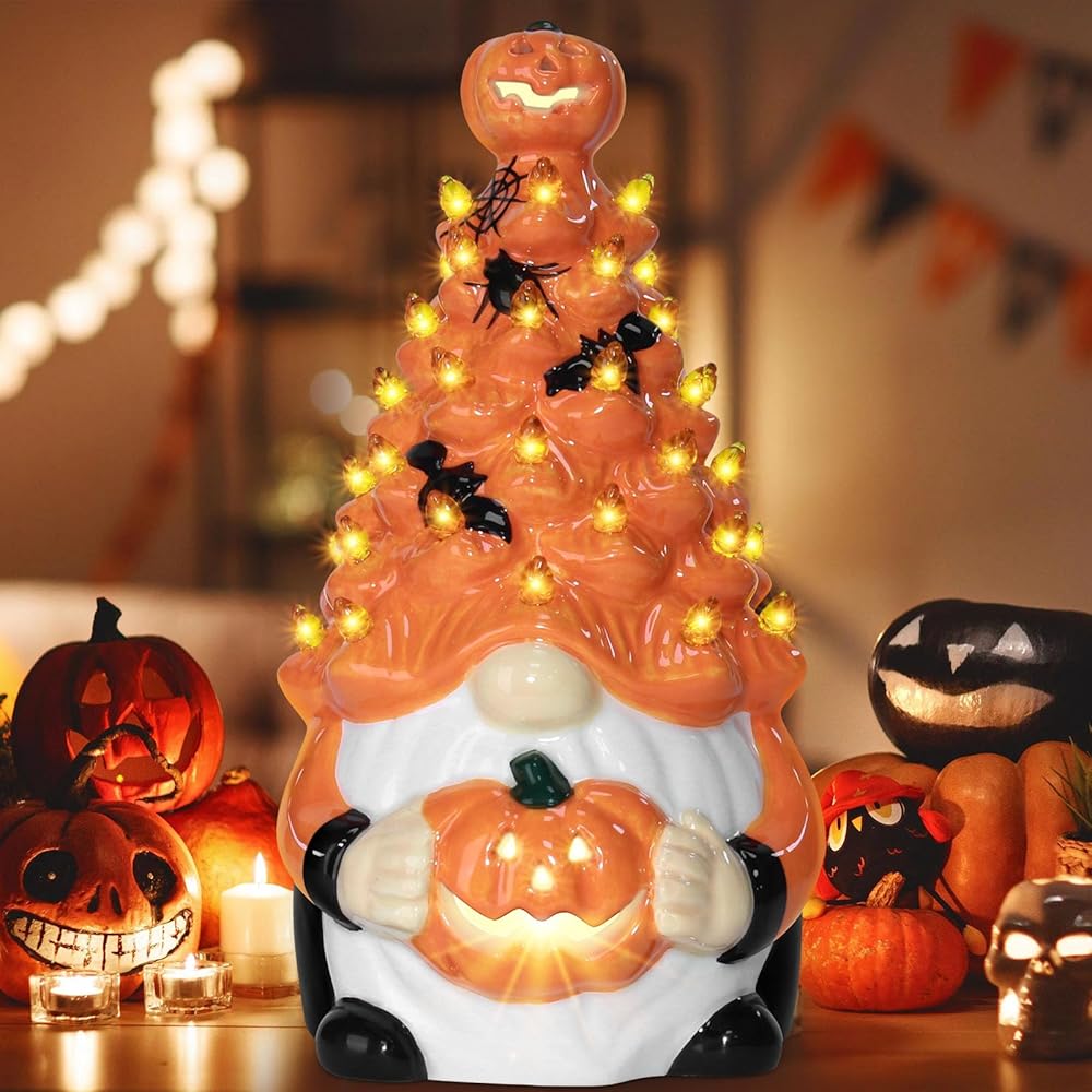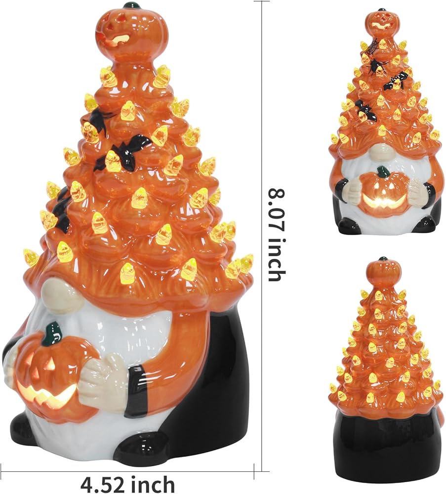 Pre-Lit Illumination: Each ceramic pumpkin gnome comes equipped with warm lighting, providing a soft glow that creates ambiance for your indoor space, making them perfect as Halloween tabletop centerpieces or mantelpiece accents
