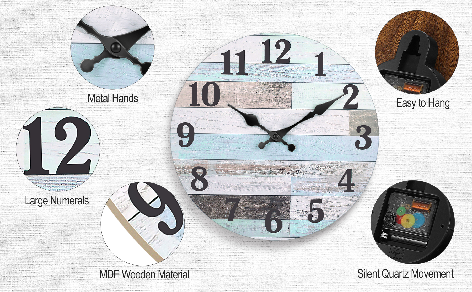 ✅ ساعة حائط للديكور: هذا الطراز الريفي الحديث هو ديكور رائع لغرفة المعيشة وغرفة النوم والمطبخ والمنزل والحمام وغرفة الطعام والفصل الدراسي وغرفة الضيوف والمكتب والمكتبة.