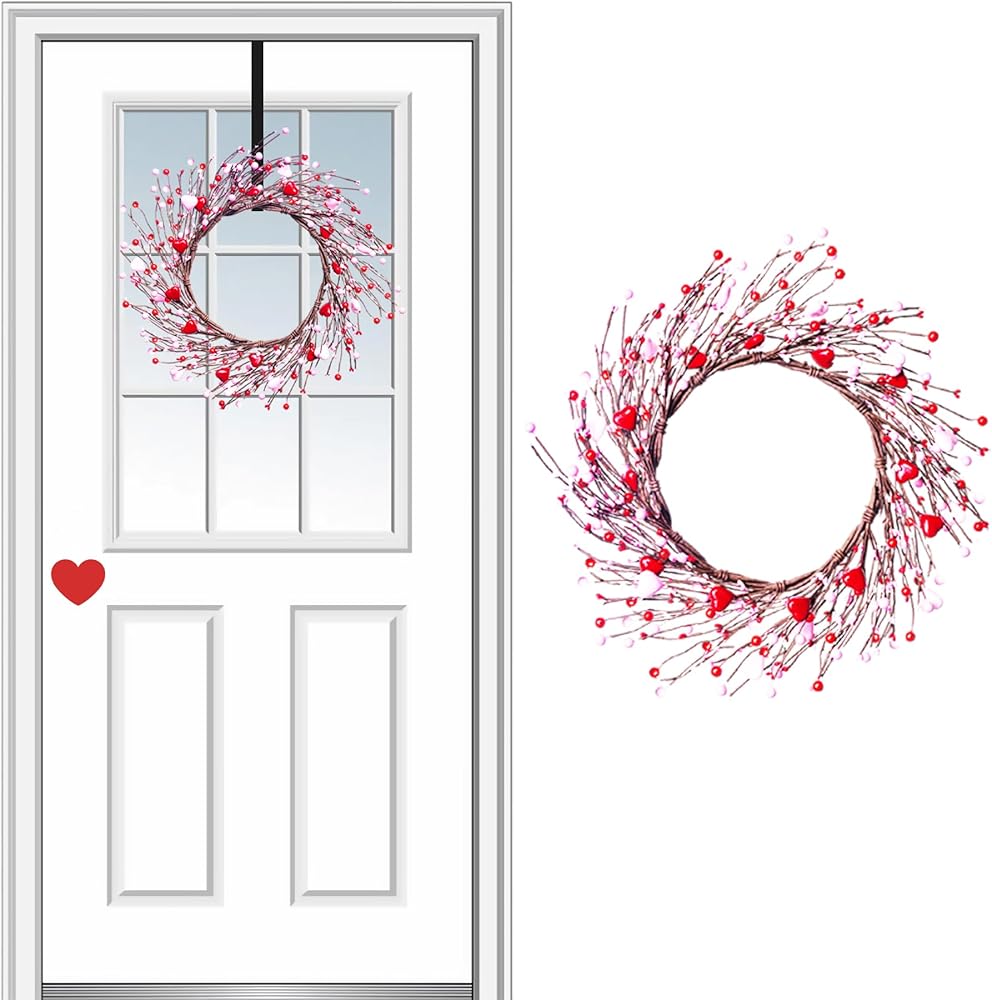 مواد عالية الجودة: إكليل عيد الحب التوتي الأحمر والوردي هذا مصنوع من مواد عالية الجودة، والقلوب الوردية والحمراء من البلاستيك، ولا يتطلب صيانة خاصة، ويمكن للإكليل الحفاظ على ألوانه الزاهية.
