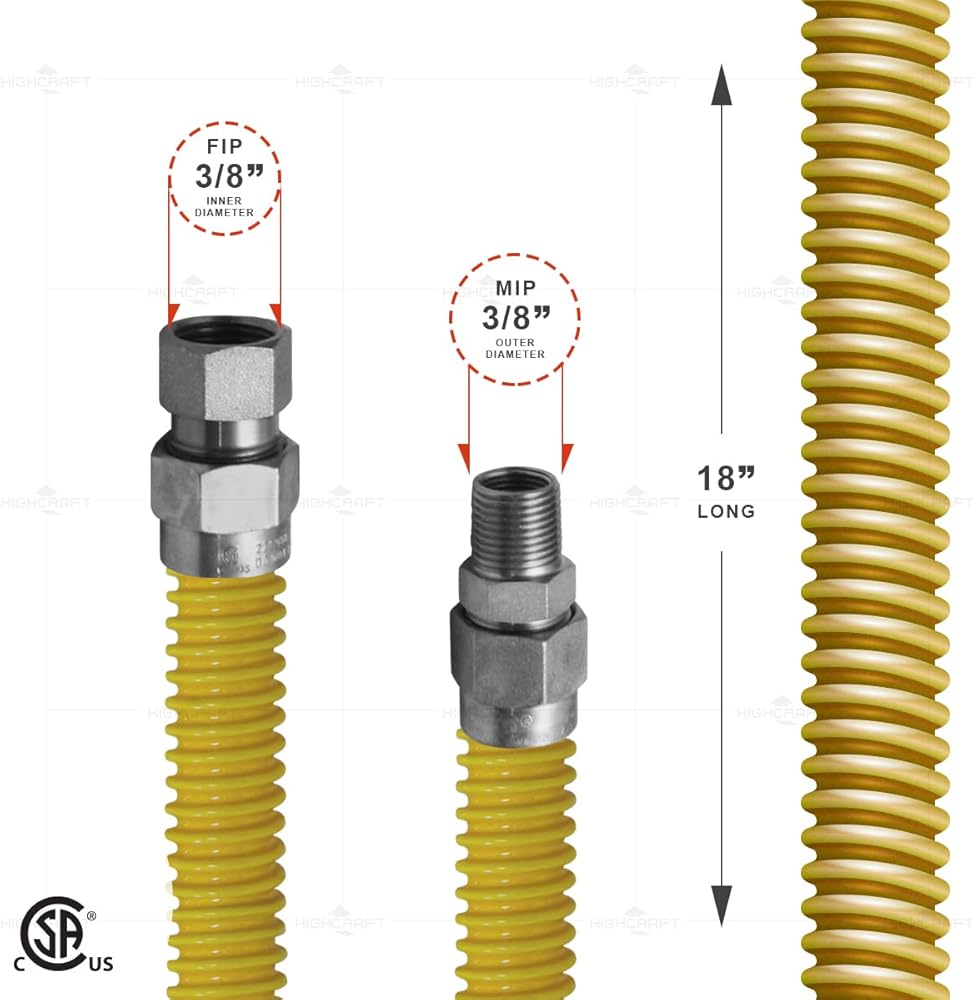 لسخان الفضاء وسجل الغاز. يتمتع خرطوم خط الغاز المصنوع من الفولاذ المقاوم للصدأ بسعة 43,800 وحدة حرارية بريطانية، وهو مصمم كموصل غاز لسخانات الفضاء/سجلات الغاز. 45.72 سم طول بقطر خارجي 3/8 بوصة وقطر داخلي 1/4 بوصة. يشتمل على تركيب من الفولاذ المقاوم للصدأ مقاس 3/8 بوصة FIP × 3/8 بوصة MIP.