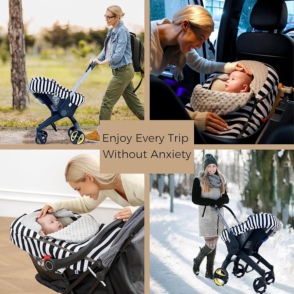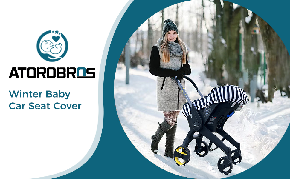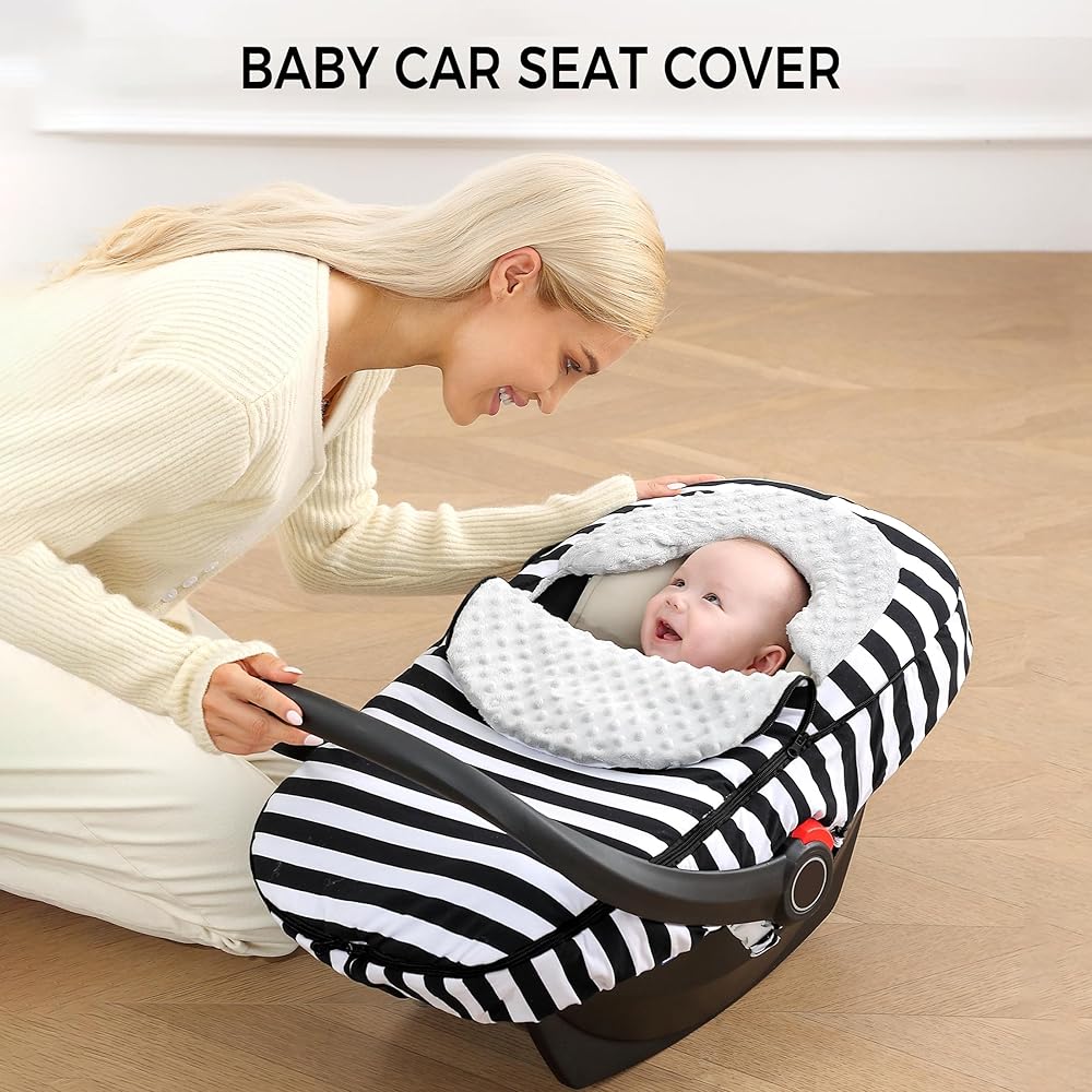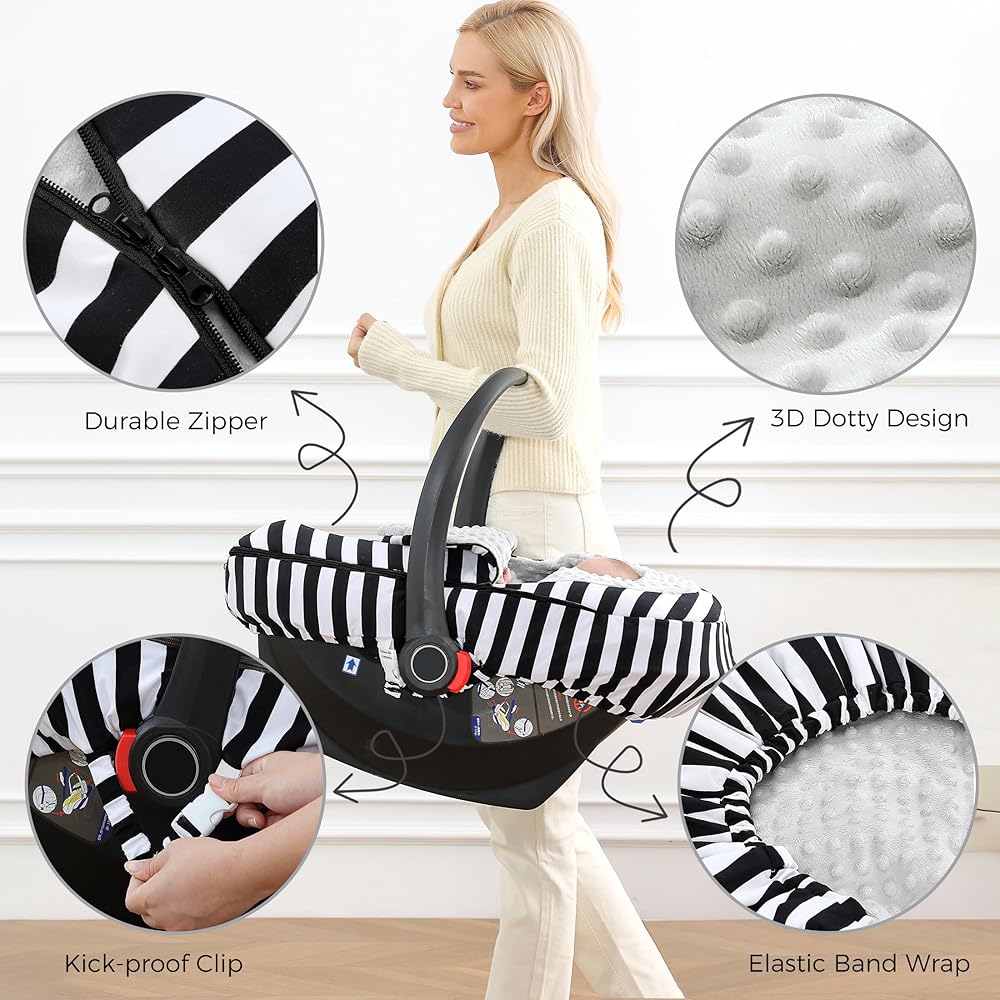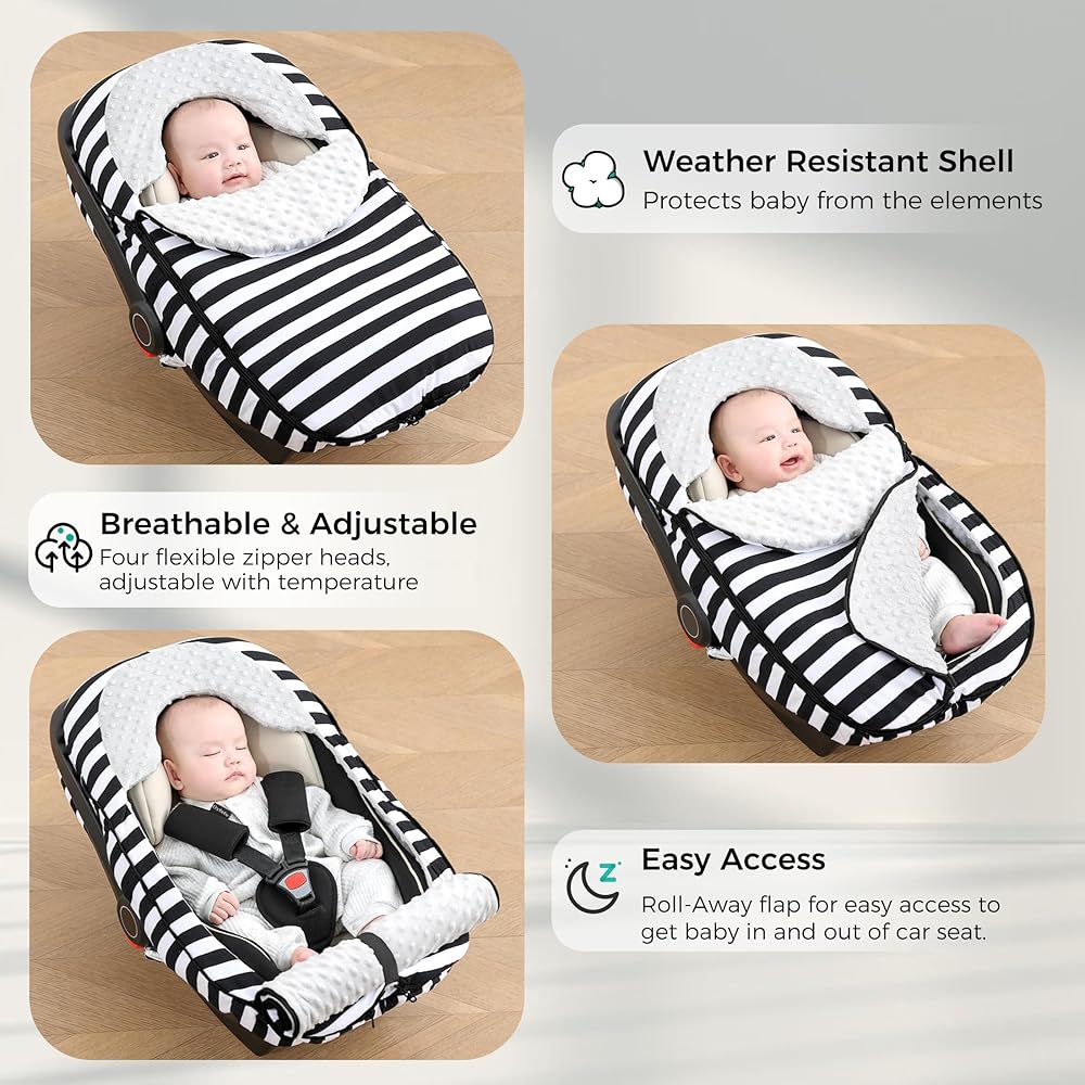 غطاء مقعد سيارة للأطفال من ATOROBROS، غطاء مقاوم للشتاء لمقعد السيارة وعربة الأطفال، مظلة مقعد السيارة للرضع للتدفئة، قطن فائق النعومة ونقطة مينكي، شريط أبيض وأسود