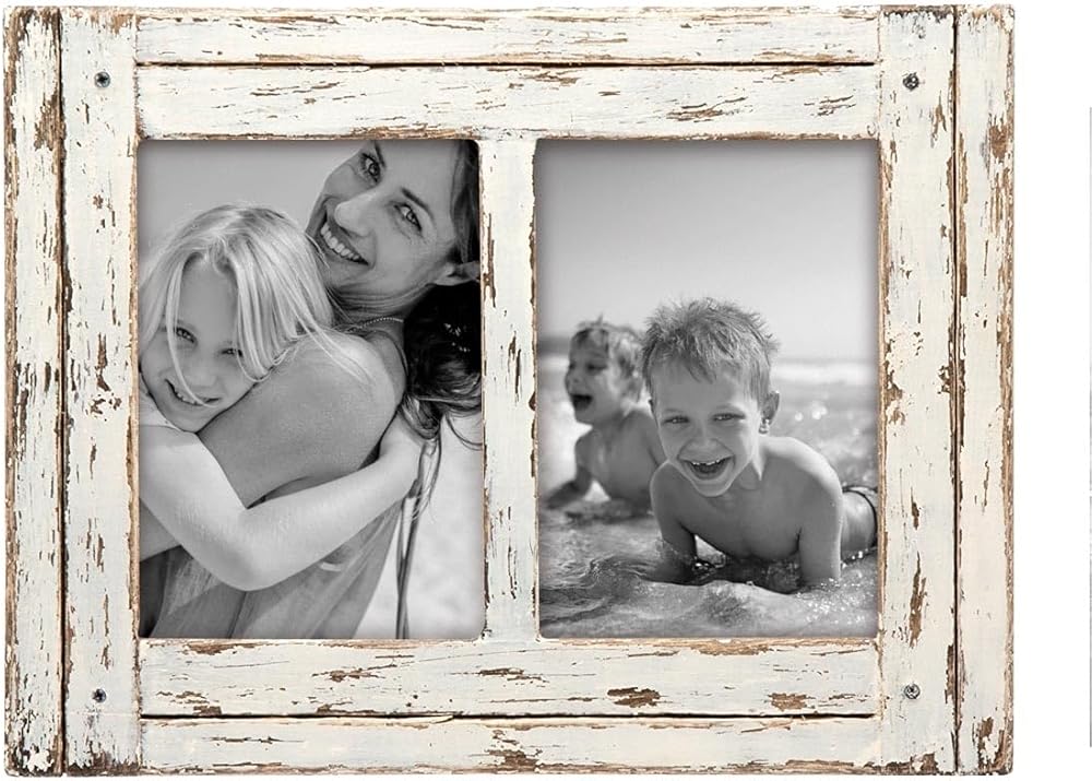 Style: The wood picture frame features a distressed white plank wood finish and holds two 5 x 7 photos. With it's lovely rustic style, this frame will fit perfectly with your favorite décor.