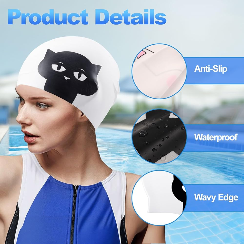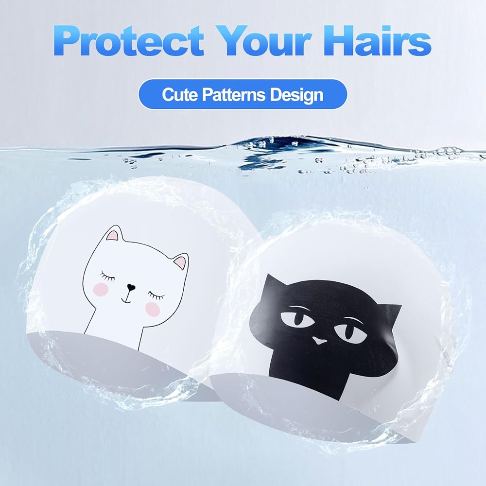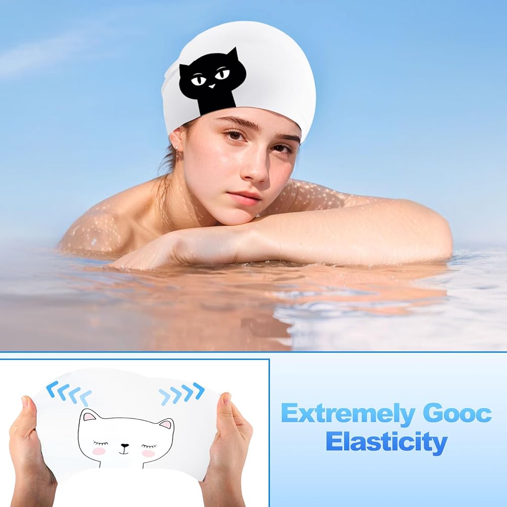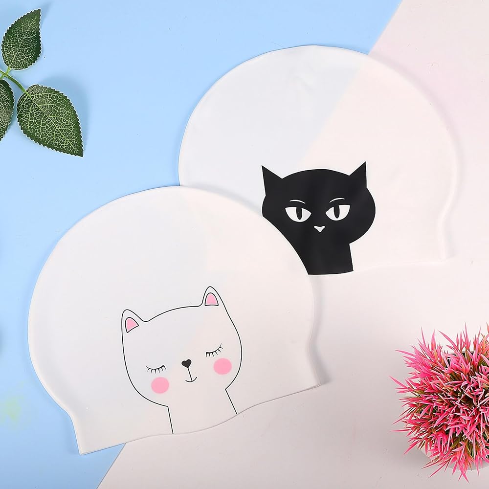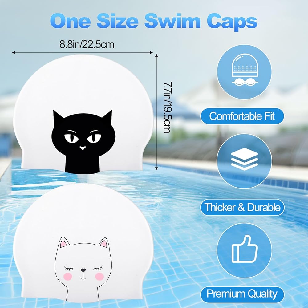 مقاس واحد بمرونة عالية: سوف تحصل على قطعتين من قبعات السباحة للبالغين ذات مرونة عالية بعرض 8.8 بوصة/22.5 سم، وارتفاع 7.7 بوصة/19.5 سم، وفتحة 7.5 بوصة/19 سم. تصميم نمط القط الجميل يجعلك مميزًا في حمام السباحة.