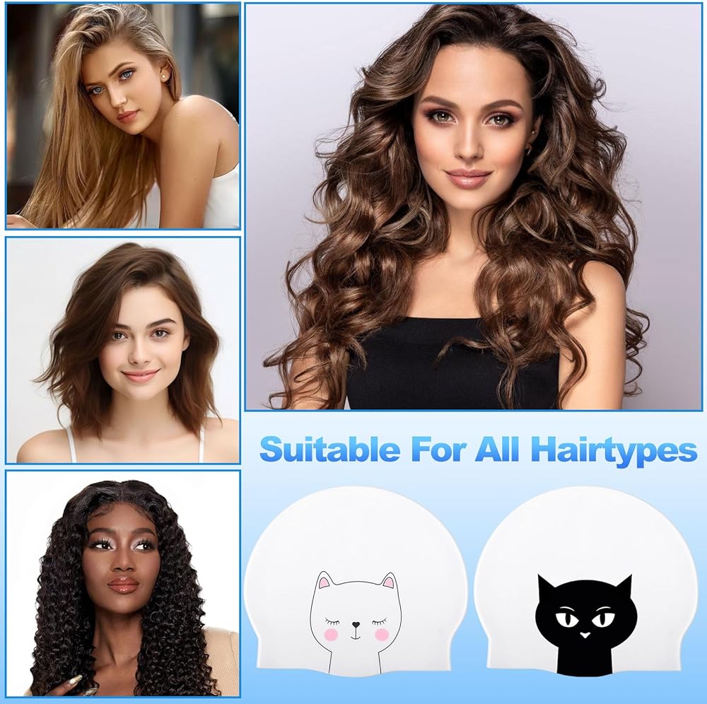 مريحة في الارتداء: ستكون قبعة السباحة النسائية مريحة عند رأسك، لتجنب طفو الشعر على الماء وتقليل مقاومة السباحة. كما أنها سهلة الارتداء والخلع دون تمزيق شعرك.