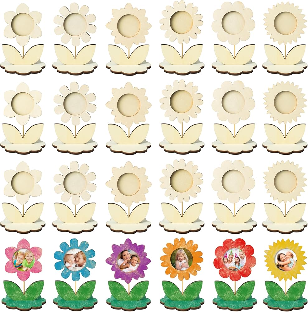 إطارات صور زهور خشبية - 24 مجموعة من إطارات الصور الخشبية DIY لوعاء الزهور الخشبية للأطفال في الخريف، حامل صور صغير لإطارات الصور لحفلات أعياد الميلاد وديكور الطاولة المنزلية