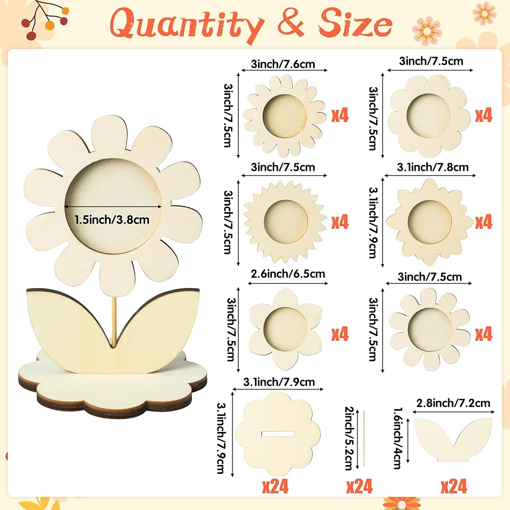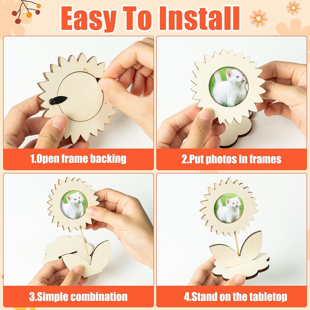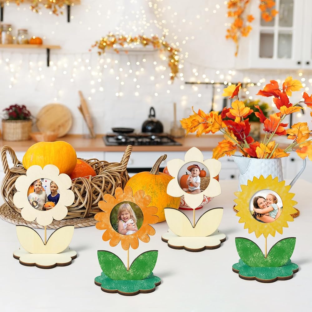 Standing Flower Design: Create a warm and personalized gift with these wooden flower picture frames. Featuring 6 different adorable designs, they are great for displaying photos of kids, family, friends, or pets. Ideal for crafting unique and heartfelt gifts, these frames add a warm, romantic touch to any space.