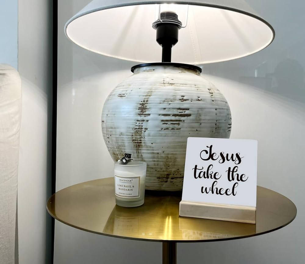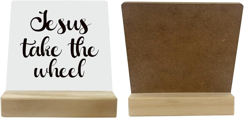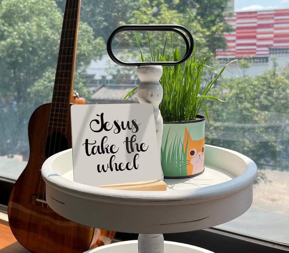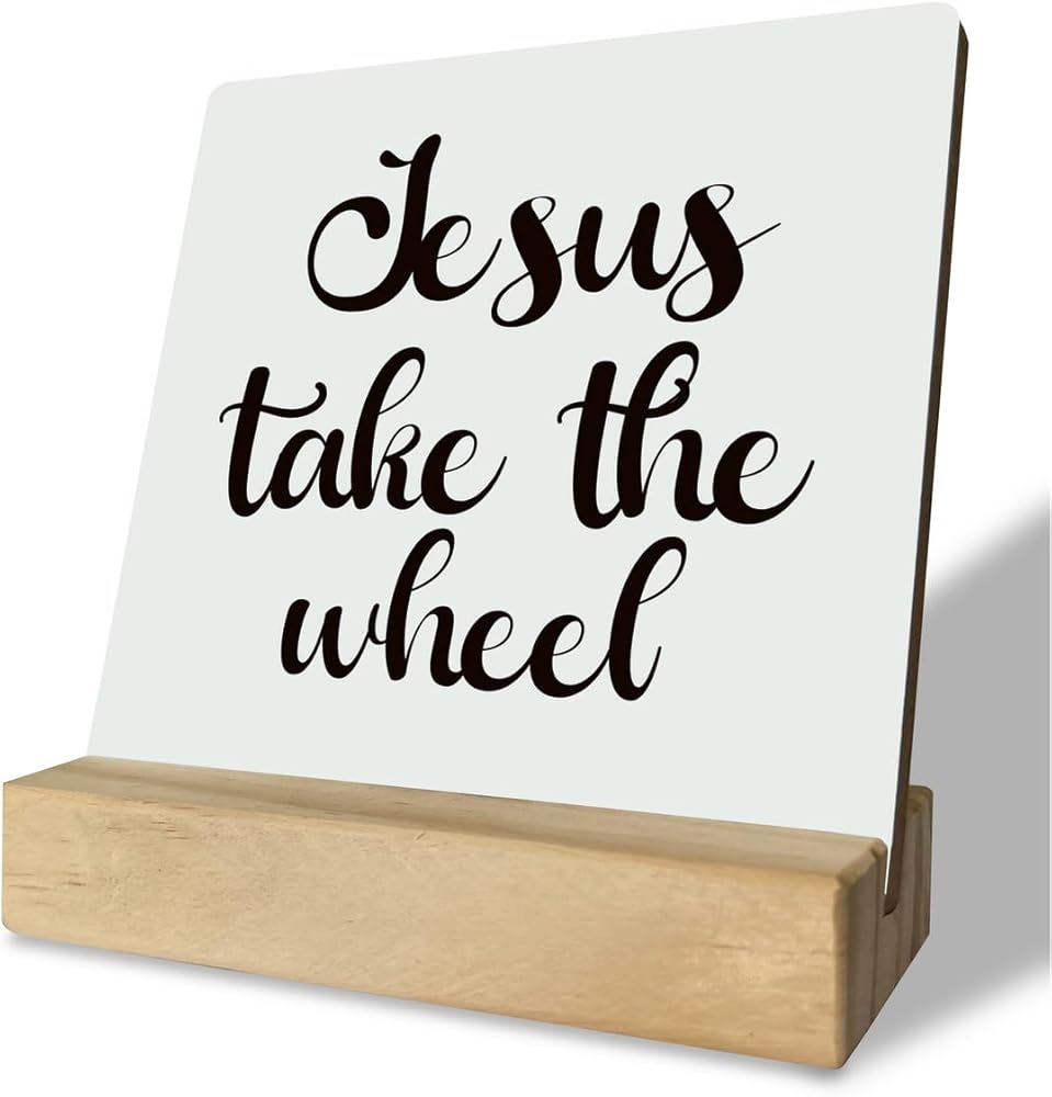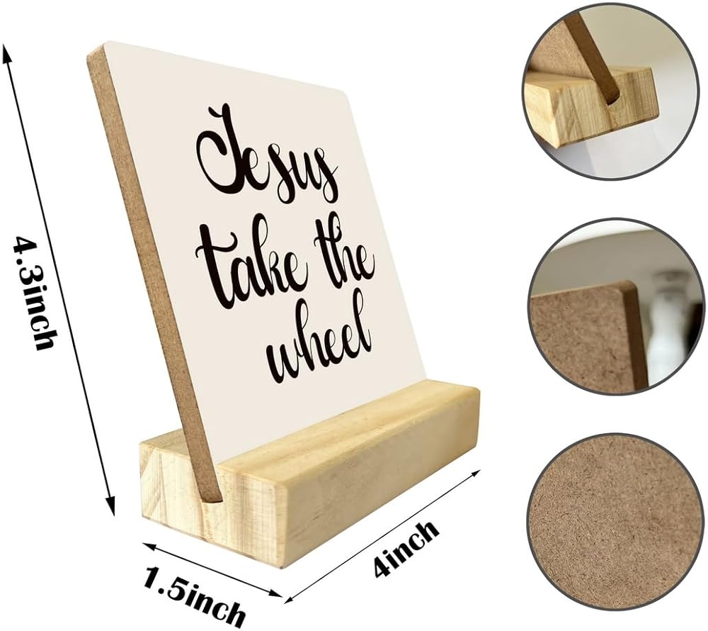 ديكور مسيحي، لوحة مكتب مع حامل خشبي مقاس 10.16 × 4.3 بوصة، لافتة خشبية ملهمة، فن ديكور الطاولة، ديكور ديني للمزرعة المنزلية، عمل فني مسيحي، علامة يسوع تأخذ العجلة