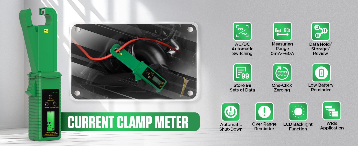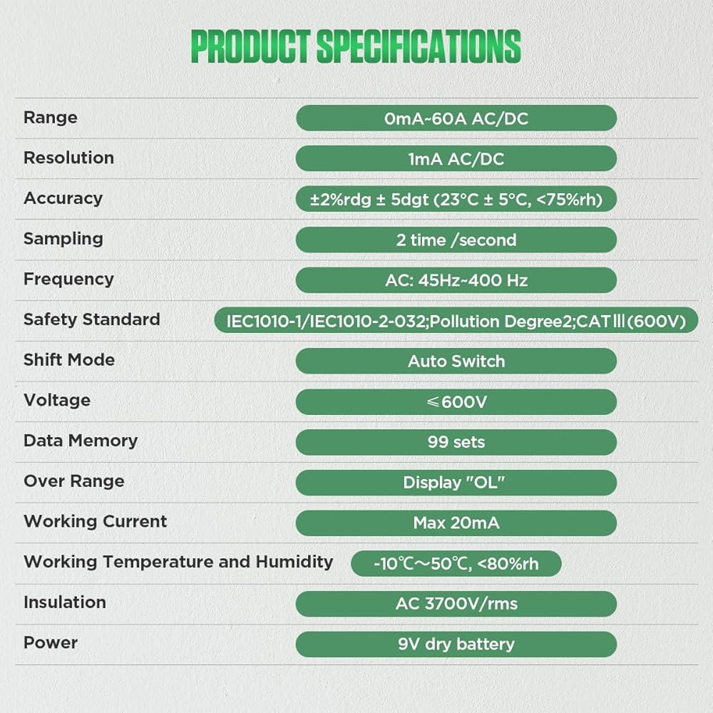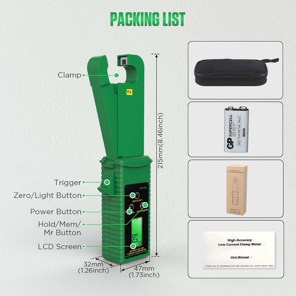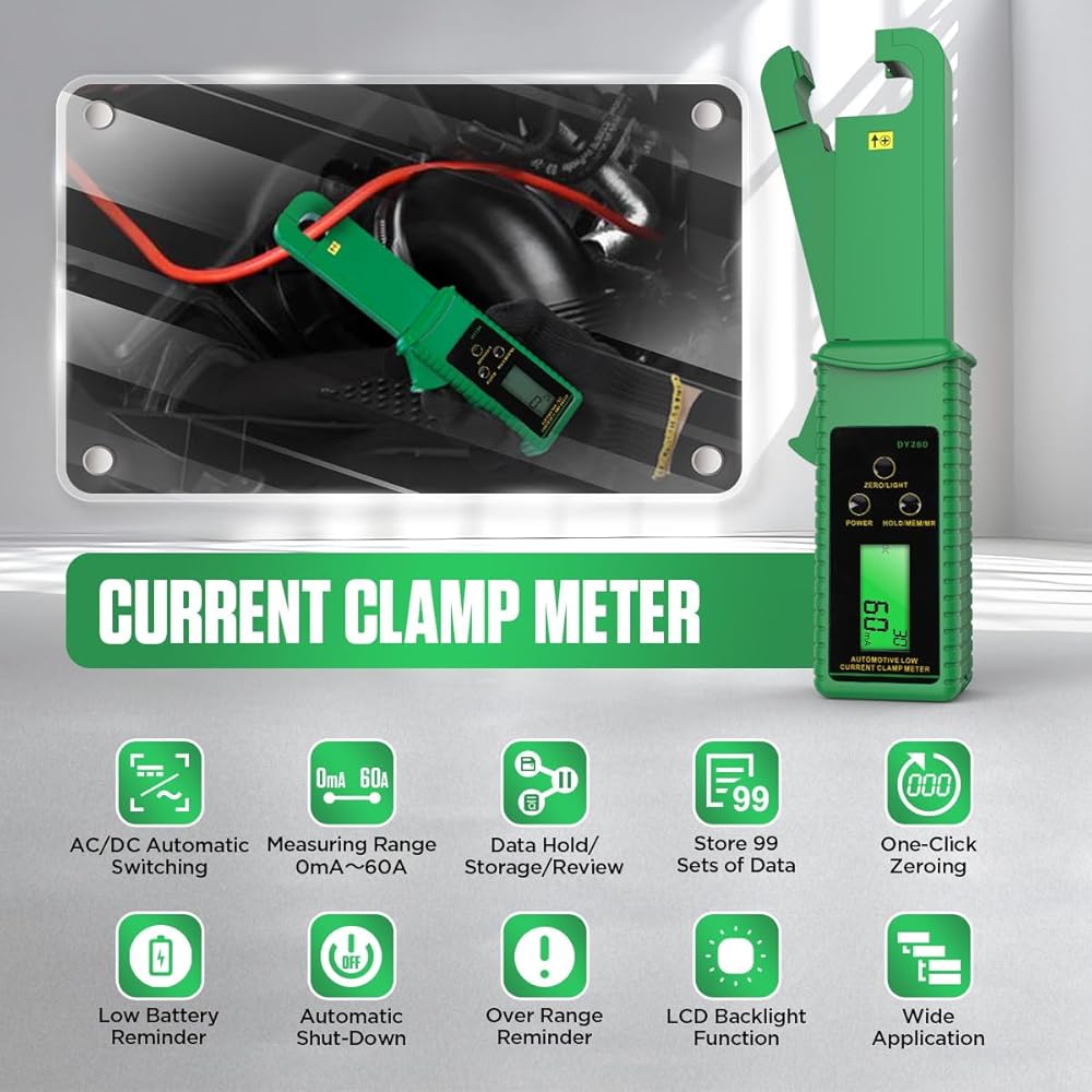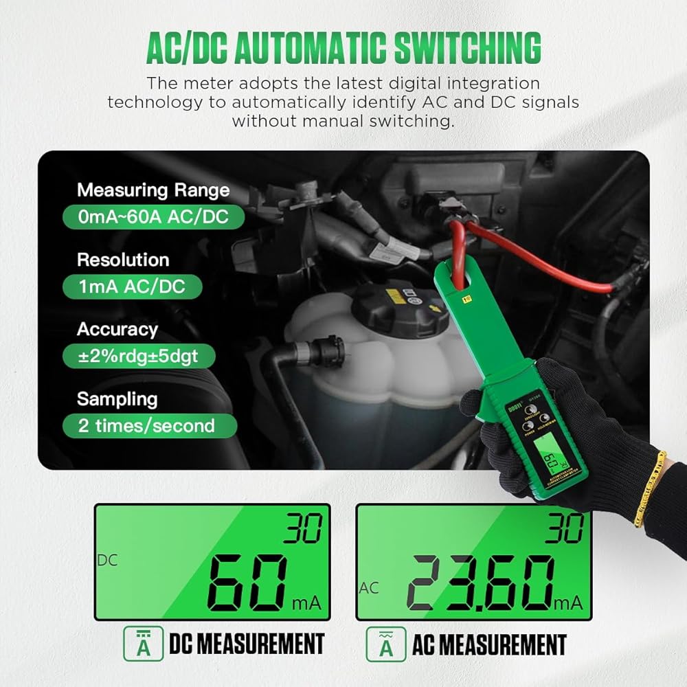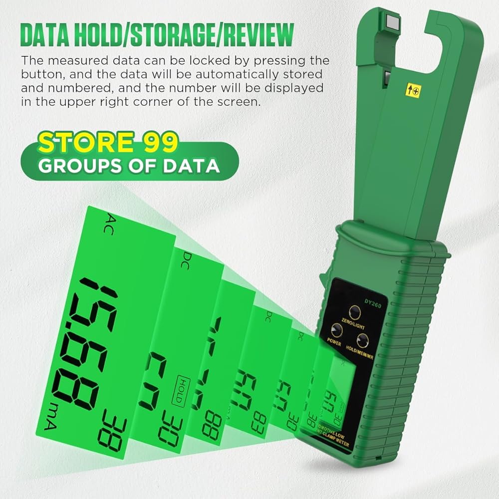 المشبك متر التيار المتناوب/تيار مستمر جهاز اختبار التيار 0mA-60A أمبير متر المشبك التيار المتناوب/تيار مستمر تسرب التيار متر التيار المتناوب تيار مستمر السيارات تبديل أمبير المشبك المتعدد الرقمية المشبك متر عدة ، عقد البيانات/الذاكرة/مراجعة ، تخزين 99 مجم