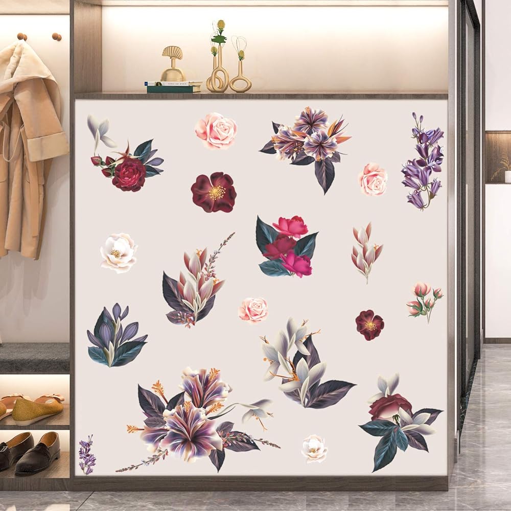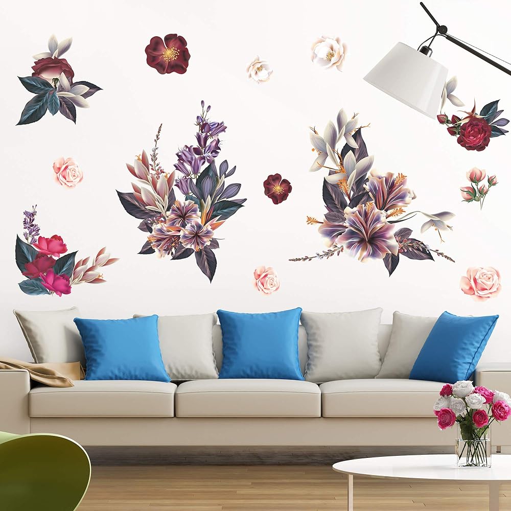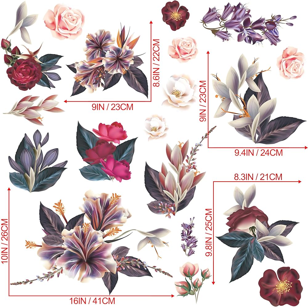Vintage floral pattern: The elegant floral wall stickers mural home decoration accessories contains pink roses, red peonies and tropical flowers plants together to form a retro atmosphere of wall decals, very modern retro wall art decoration, adding to the romantic atmosphere of your room and furniture, each bouquet of flowers is a separate sticker you can arrange them as you like.