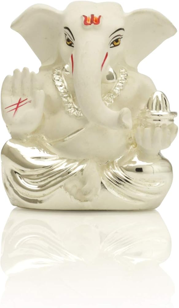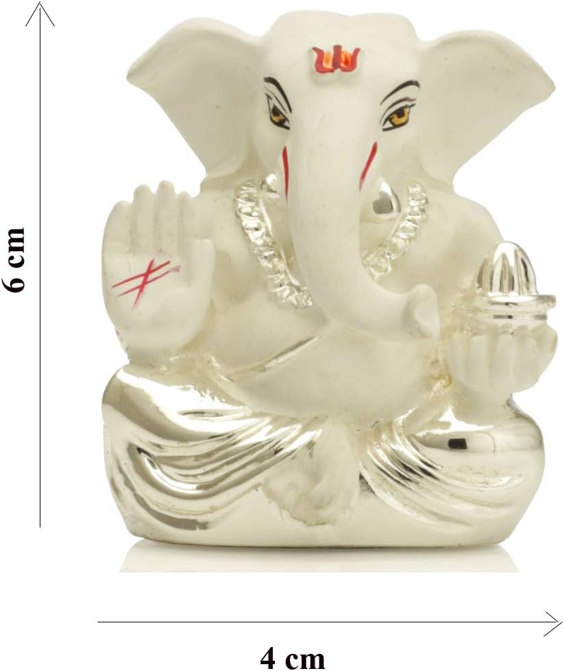 Uniquely sculpted in Silver Plated White Terracotta and hand painted in beautiful work, this Ganesha statue is a work of art
