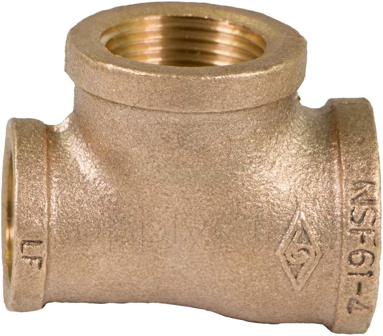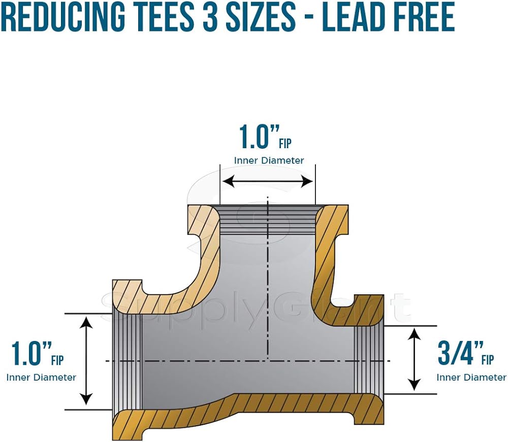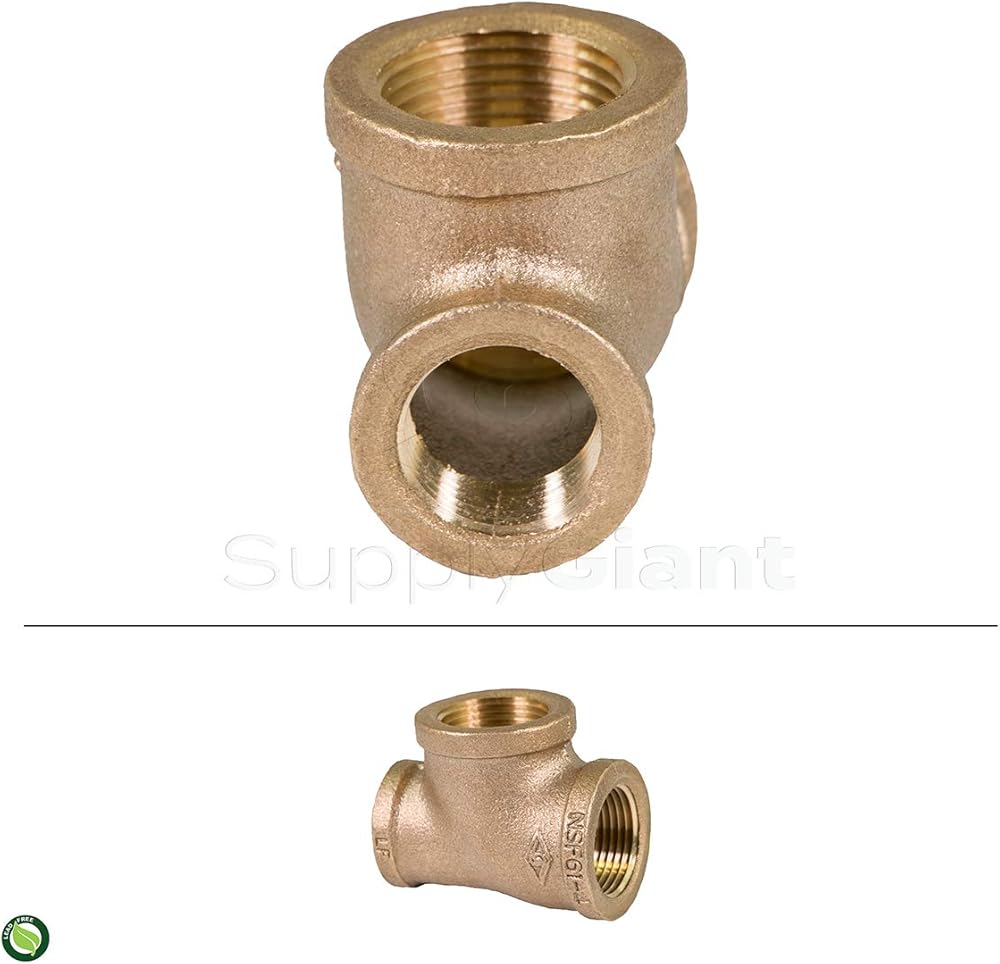 This is a Supply Giant brass reducing tee with Three size and a lead free brass construction. The female National Pipe Taper (NPT) threads for connecting and branching sections of pipe or fittings. Its 1 x 3/4 x 1 inch in diameter for steel pipe sizes. It has female NPT threads for connecting to male threaded pipes, creating a tighter seal than straight threads. This fitting is made of brass for corrosion resistance, ductility at high temperatures, and low magnetic permeability. Brass can be connected to copper, brass, plastic, aluminum, and welded steel. This fitting is produced in a Iso9001:2000 qualified production Environment and all units are 100% air pressure tested. It is rated at 125 LB pressure and manufactured to standard ASTM B-584-06 for lead-free quality assurance. The fitting conforms to the astm B62 and all applicable ANSI standards. Brass finished plumbing fitting, made from premium materials, this plumbing fitting offers great function and value for your home. It is certified to Meet NSF/ANSI 61-8 standard for quality assurance. ⚠ California Proposition 65 Warning: This product is known to the state of California to cause cancer, or other reproductive harm. For more information, go to www.p65warnings.ca.gov.