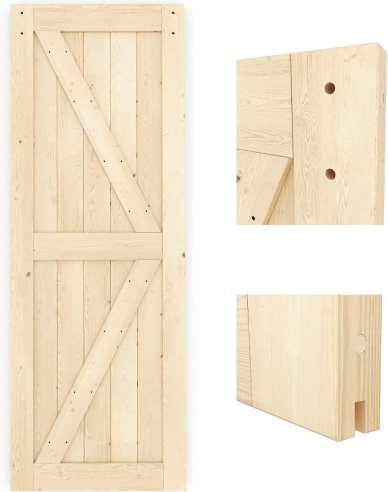 【مناسب لأجهزة باب الحظيرة القياسية 】سُمك باب الحظيرة بعرض 76.2 سم × ارتفاع 84 بوصة هو المعيار 1 3/8 بوصة، والوزن حوالي 42 رطلًا، وفتحات مثقوبة مسبقًا لتثبيت الشماعة، مع أخدود سفلي لدليل الأرضية، تصميم إطار على شكل حرف K مزدوج الجوانب، يمكن أن يحافظ على هيكل باب الحظيرة الخشبي أكثر استقرارًا، نقترح عليك تركيبه بأي لون تريده وفقًا لنمط منزلك، لجعل باب الحظيرة الخاص بك فريدًا.
