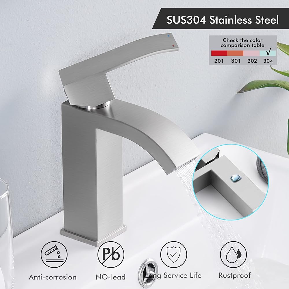 الفولاذ المقاوم للصدأ SUS 304: صنبور الحمام هذا مصنوع من الفولاذ المقاوم للصدأ SUS304 عالي الجودة ويحتوي على 18/8 كروم/نيكل للحماية من التآكل والصدأ، مما يضمن عمر خدمة طويل ويتطلب القليل من الصيانة. توفير الوقت والجهد في استبدال وصيانة الحنفيات!