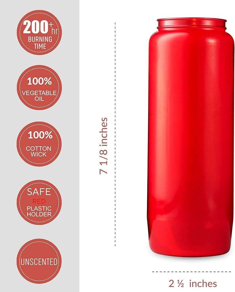 Use as Catholic devotional candles, red ritual candles, novena candles or yahrzeit memorial candles.