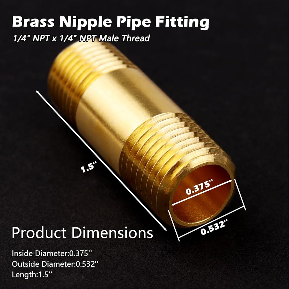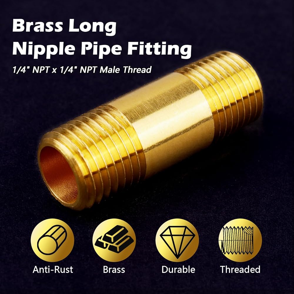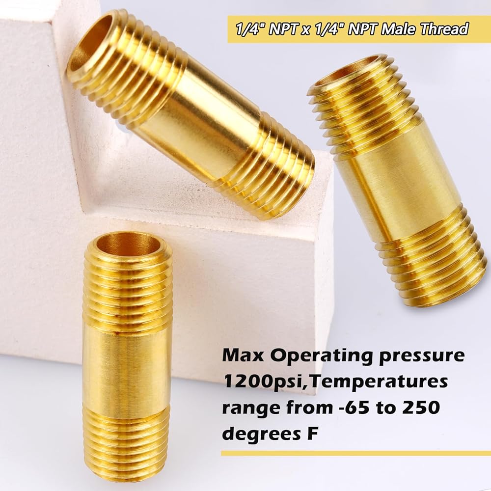 1/4" Male National Pipe Taper (NPT) threads for connecting to 1/4" female threaded pipes,length 1-1/2",Long nipple for connecting two threaded pipes and extending pipe length.