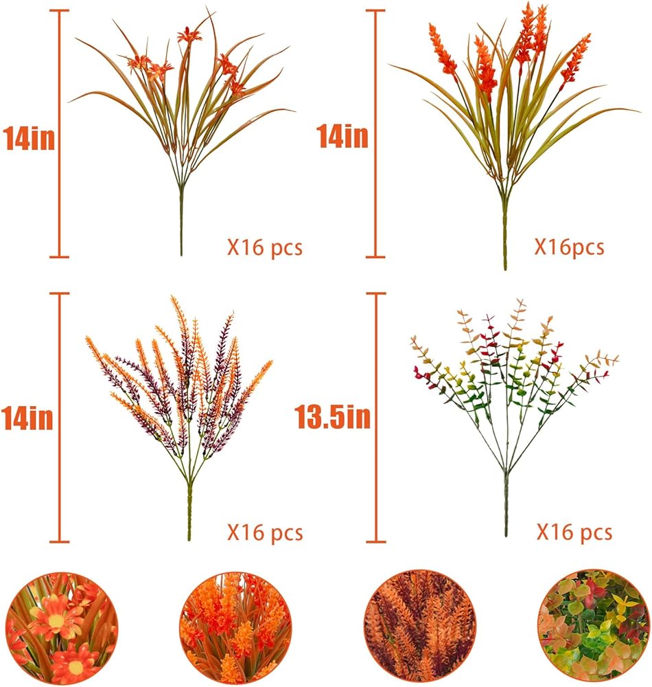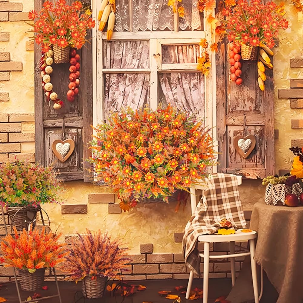 نباتات الخريف المقاومة للأشعة فوق البنفسجية: مصممة لتحمل الظروف الخارجية، نباتات الخريف الصناعية لدينا مقاومة للأشعة فوق البنفسجية، مما يضمن أنها لن تتلاشى أو تفقد ألوانها النابضة بالحياة بمرور الوقت.