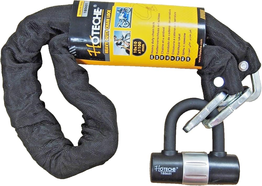 Hoteche 2 PC 43in سلسلة قفل شديدة التحمل للدراجة النارية مضادة للسرقة من سبائك الصلب 180601، أسود