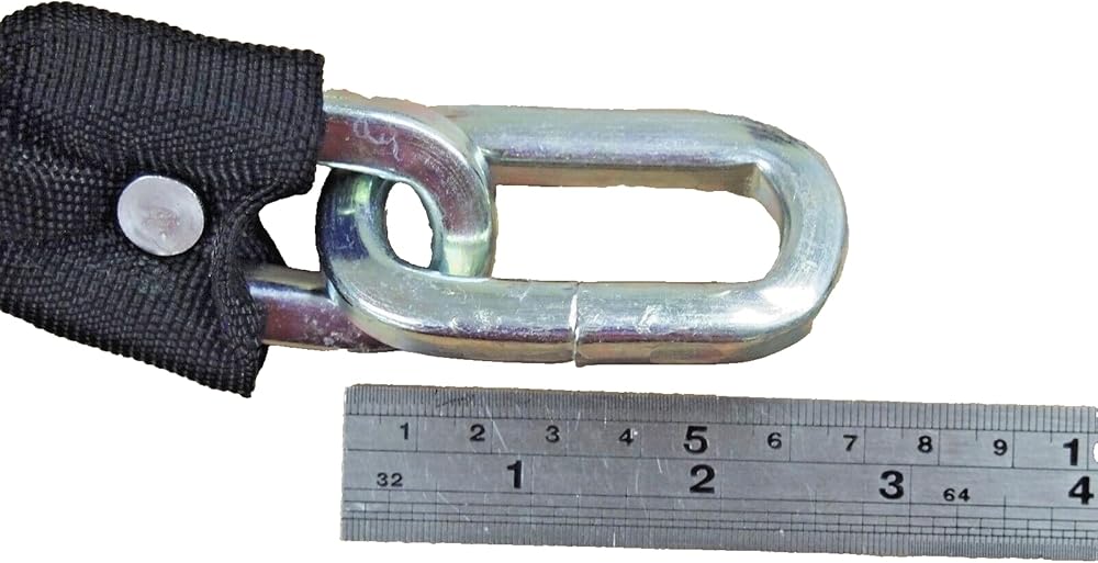 Anti-theft, high security, 43in.(1100mm) Padlock Chain for motorcycles, boats, scooters, bikes, or home use, etc., Durability Alloy steel chain, Zinc finished; Overall length of Chain: 43in.(1100mm); Size of single ring: 5/16 x5/16 x2-3/4in.(8mmx8mmx70mm); Padlock size: overall width—4in., overall high—4in., Center Dia.—1-1/2in. Polyester cover prevents scratches; Weight per Padlock chain: 5LBS 12oz; 2 keys per Padlock Chain; Quantity: 2 PC -43in Padlock Chain.