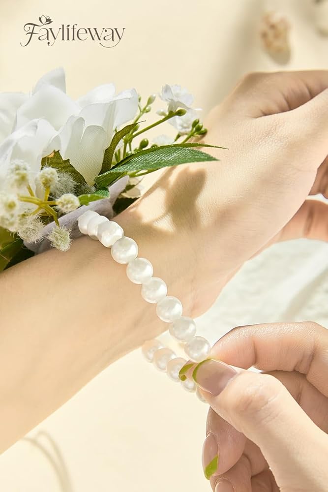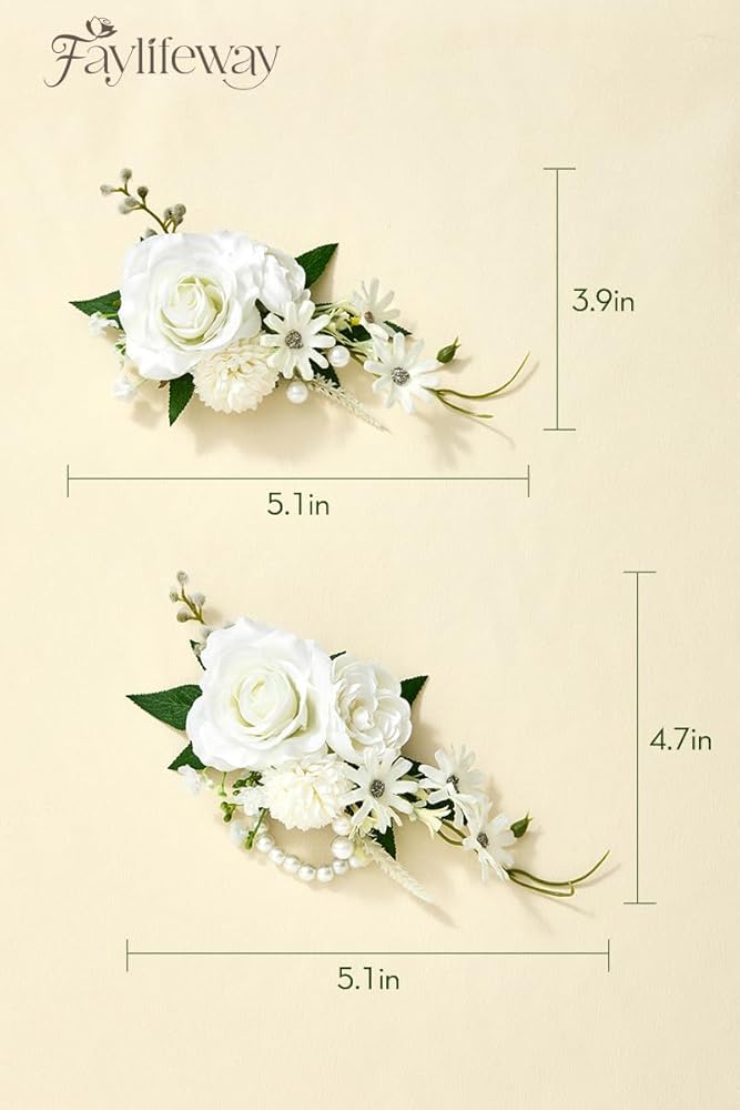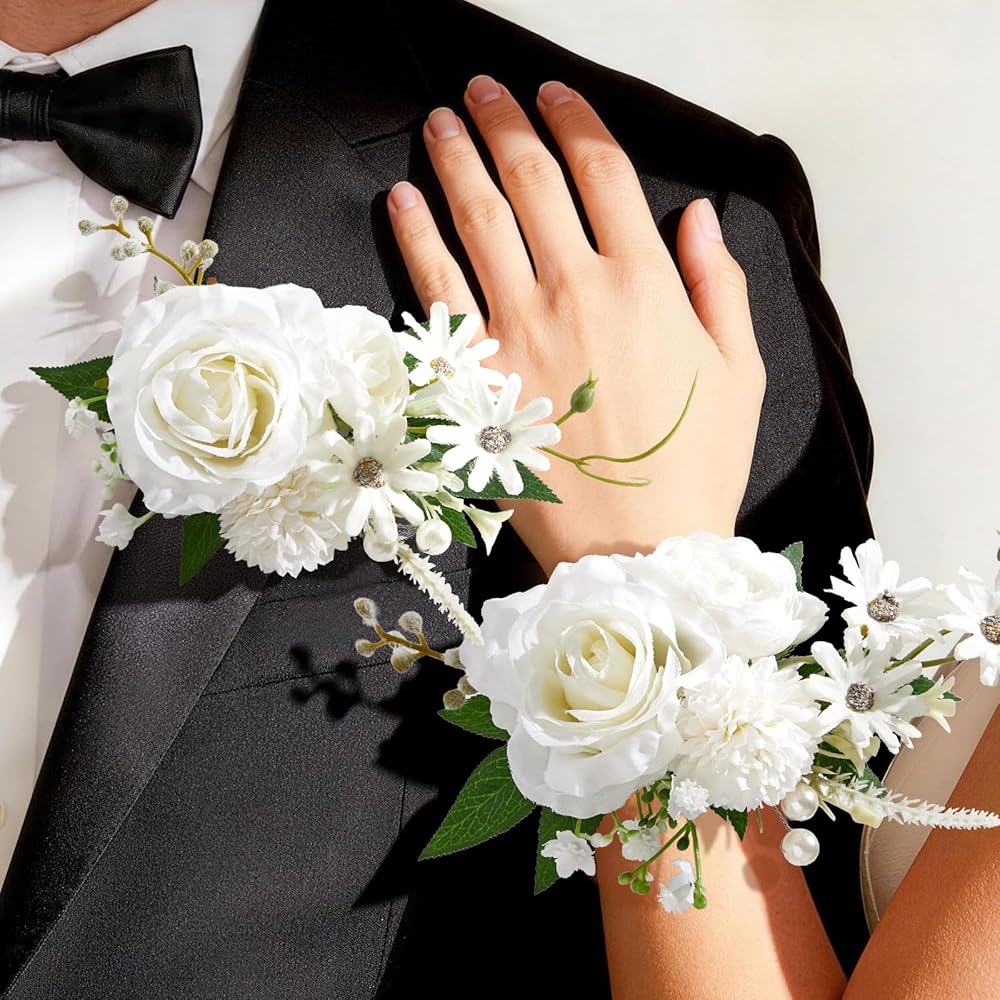 【تفاصيل العبوة】 مجموعة من 1 بوتونيير و1 صدرية معصم، الحجم 6.2 بوصة × 4.9 بوصة و5.9 بوصة × 4.3 بوصة. صدرية معصم مع سوار من اللؤلؤ الأبيض، أناقة راقية وسهلة الارتداء، تناسب معظم مقاسات المعصم.