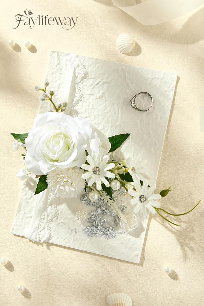 【مناسبات متعددة】حزام معصم وبوتونيير لحفلات الزفاف مثالي لأي خطوبة زواج أو زفاف، مثل الريفي والبوهو والفرنسية والريف وما إلى ذلك، في حين أنه مثالي لحفلات العودة إلى الوطن والهالوين والكريسماس وعيد الشكر وليالي الحفلات الراقصة والشواطئ واللقطات والصور الفوتوغرافية الدعائم ، الخ.