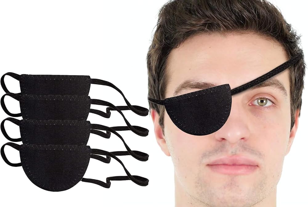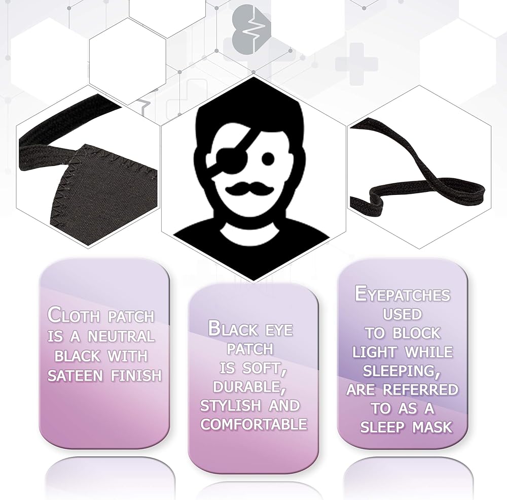 • COMFORTABLE AND STYLISH: The black eye patch is soft, durable, stylish and comfortable. Very comfortable and elastic makes it easy to put on/take off. Also a good eye mask for Halloween dresses up party, masquerade etc. Elastic eye patches can also be applied to cosplay, such as, pirates dress up.