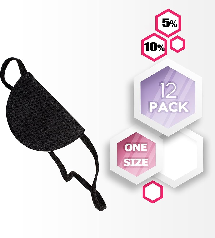 AMZ حزمة من 12 رقعة عين سوداء. حزام مرن قابل للتعديل للأطفال والكبار. عصابة رأس مرنة مع لمسة نهائية من الساتان الأسود. رائع لزي القرصان وحفلات الهالوين والألعاب.