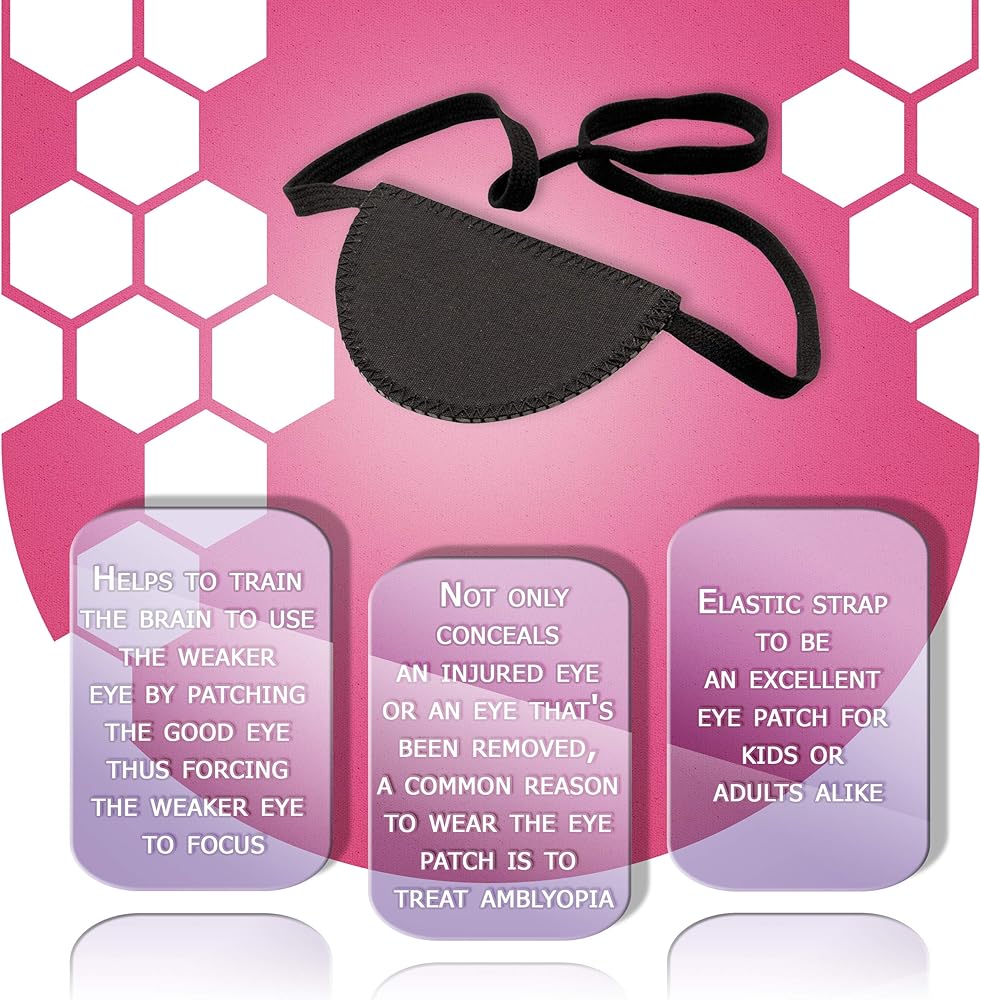 • HIGH QUALITY: Cotton Patch is a neutral black with a sateen finish. It is a universal size with elastic strap to be an excellent eye patch for kids or adults alike. This medical eye patch comes in a box of 12.