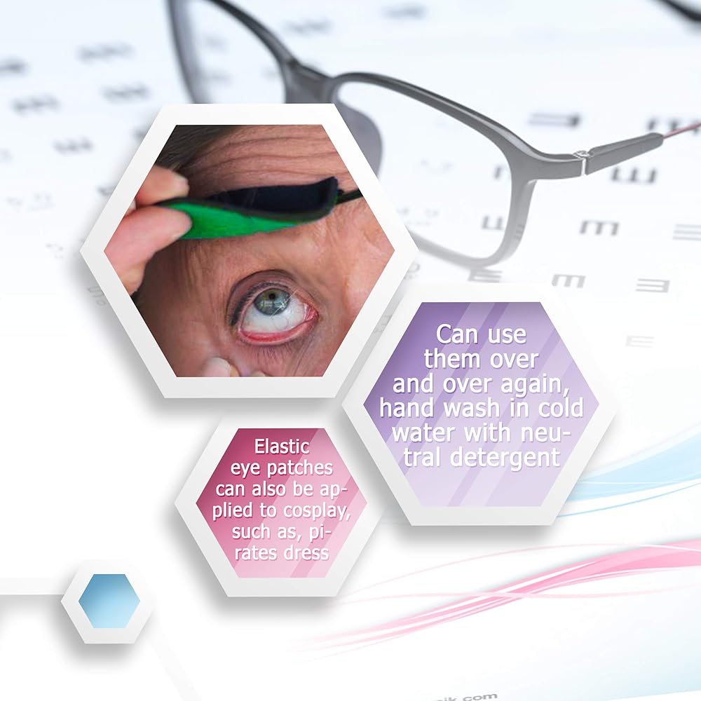 • EASY TO USE: Eye covers come with an elastic strap; you can adjust the head strap size to fit your head circumference. Suitable for most head size and easy to use. Reusable, eco-friendly and no adhesive eye patches. Can be used over and over again. Can use them over and over again, hand wash in cold water with neutral detergent.