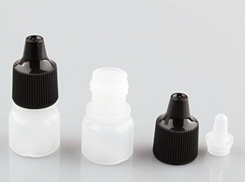 24 قطعة 5 مل زجاجة قطارة بلاستيكية فارغة قابلة لإعادة الملء، زجاجة بلاستيكية، وعاء/حاوية قطارة سائلة مع غطاء أسود (قطرات من القابس يمكن إزالتها)
