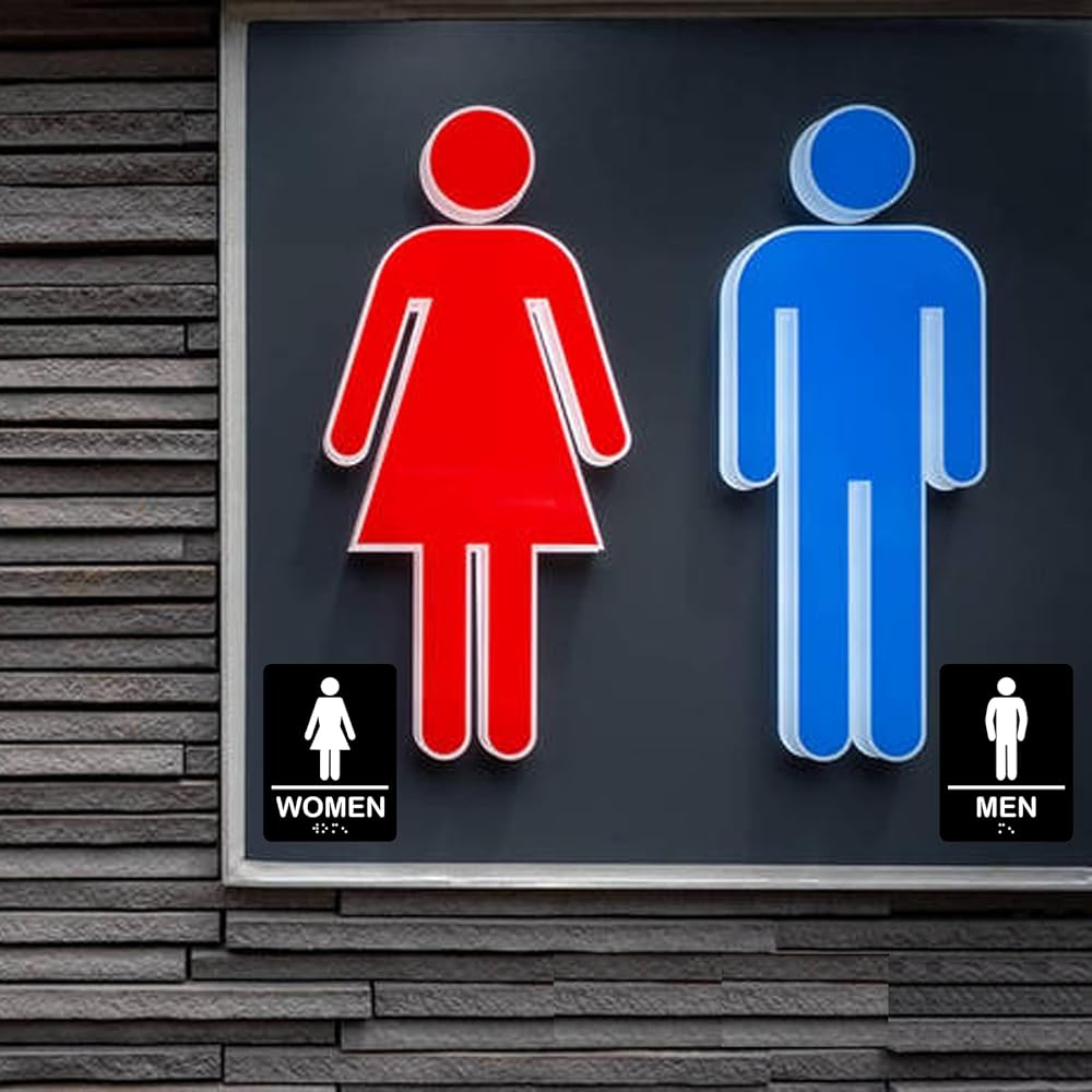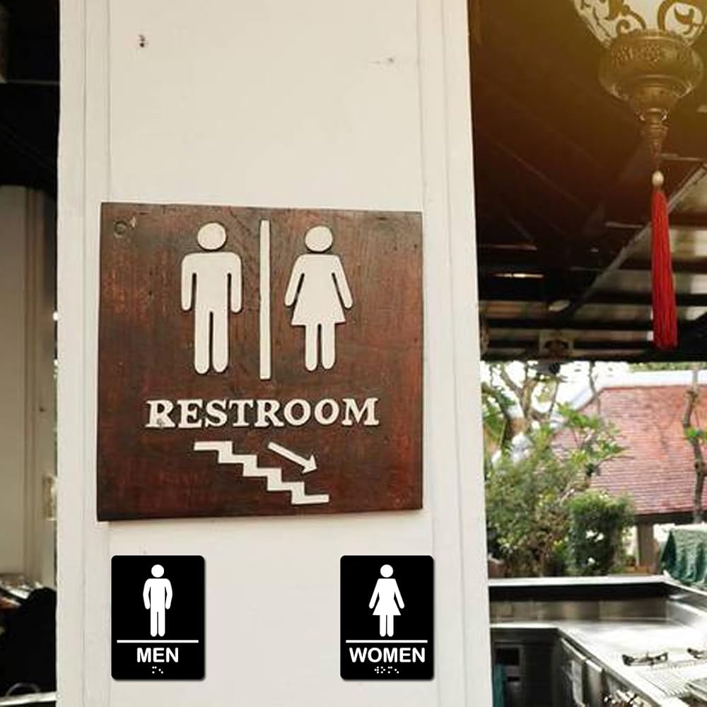 تصميم مزدوج الجوانب: علامات مرحاض مزدوجة الجوانب تُلصق بسهولة على المراحيض في مساحتك الخاصة لتجعل عملائك أو ضيوفك يشعرون بالترحيب مع لافتات الحمام هذه. يمكن للضيوف التعرف على موقع الحمام بسهولة.