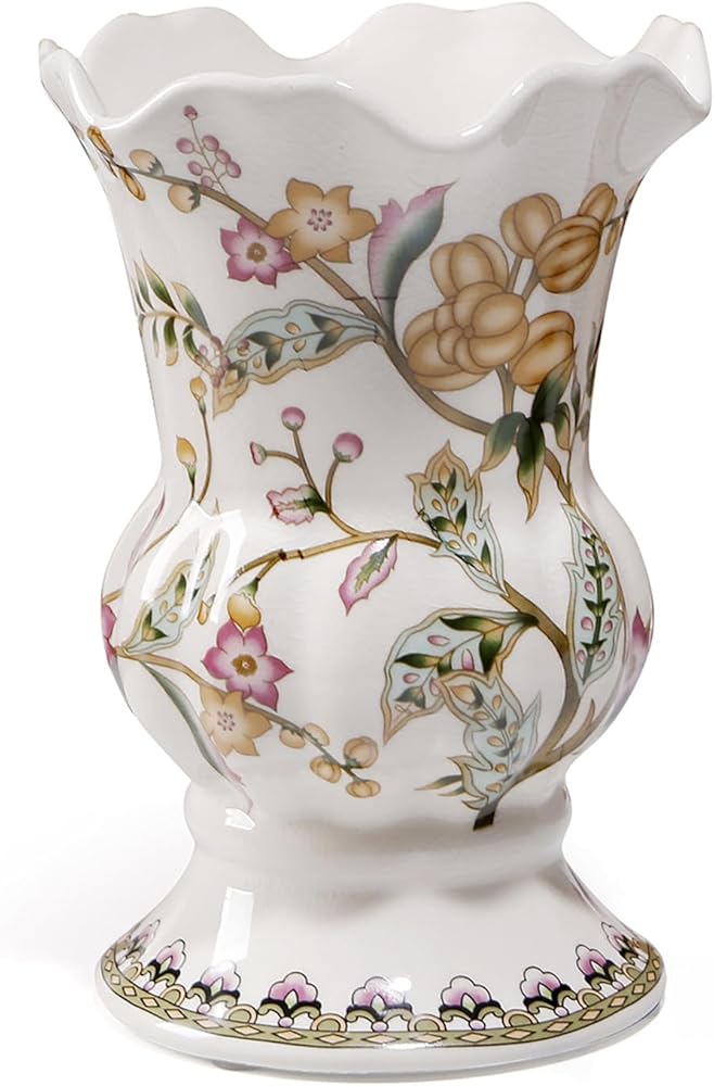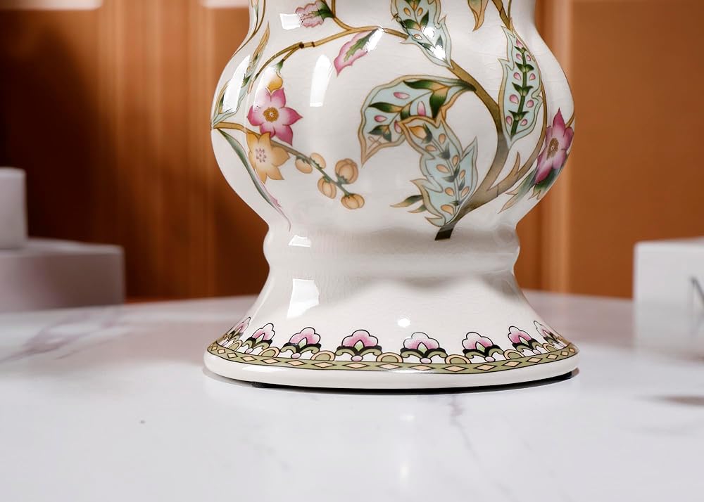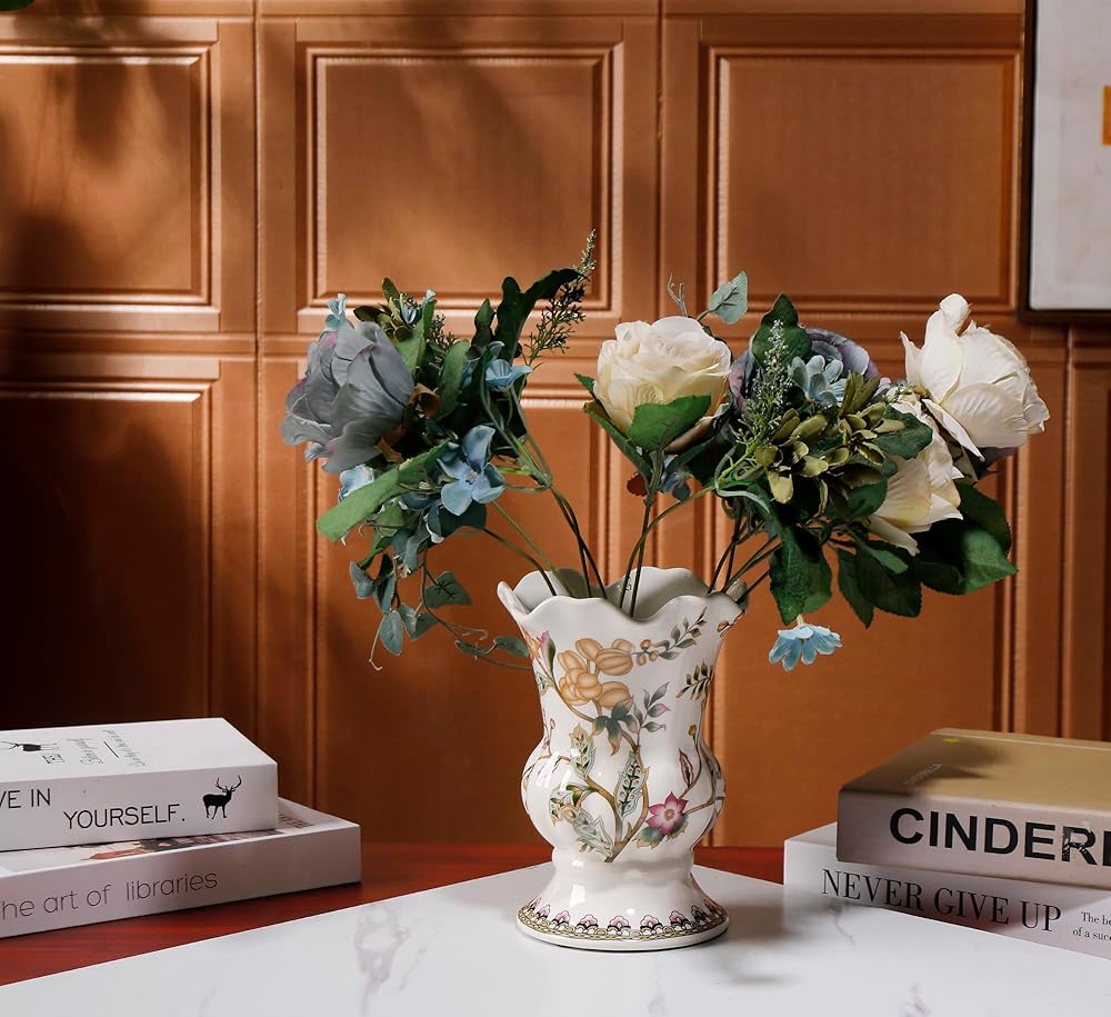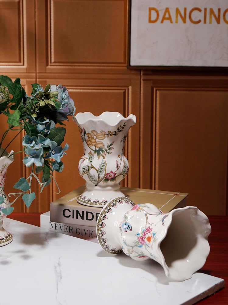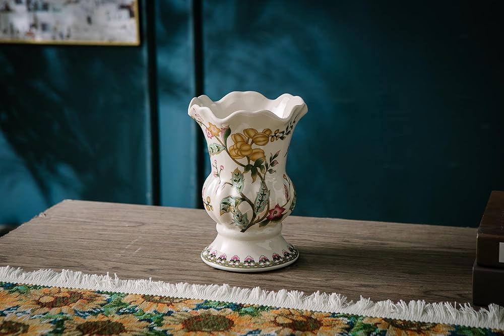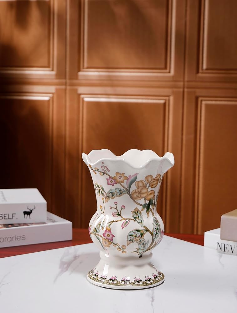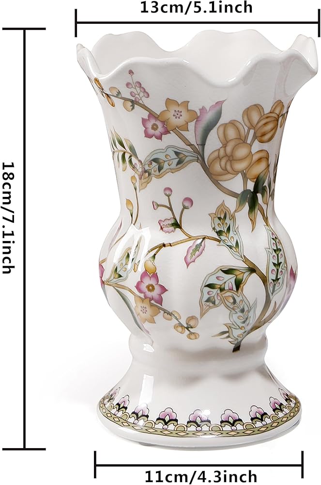Opening of the vase is the classic shape, the side is floral ceramic design,this is a very artistic ceramic vase.No sharp corners, bubbles and wrinkles on the product, safe and beautiful.Easy to wash and shock resistant. Both all sides and bottom of the vase is thickened design, compared with ordinary vase more thick and strong, with high quality ceramic floral design looks like a tasteful, elegant and stable 7.1-inch height,5.1-inch the opening width. ceramic vase with floral design production, the vase is more graceful than general vase.it is good home decor choice for any place.