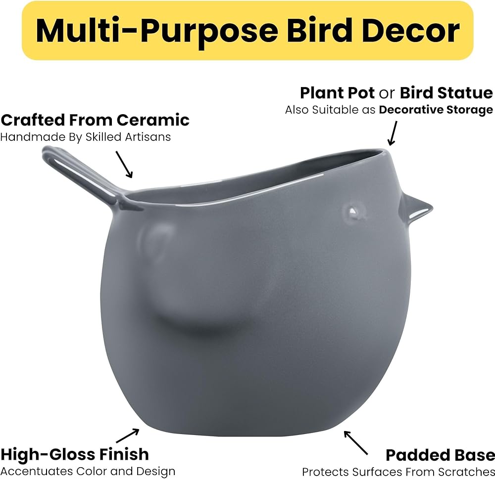 MULTI-PURPOSE TEAL HOME DECOR: Beyond their use as cute plant pots / cute planters, display the Finches on their own without plants as bird figurines, bird statue, or small kitchen storage for knick knacks and small household accessories. Its compact size makes it a versatile addition to any desk, shelf, or entryway, making it a great companion in a home or office