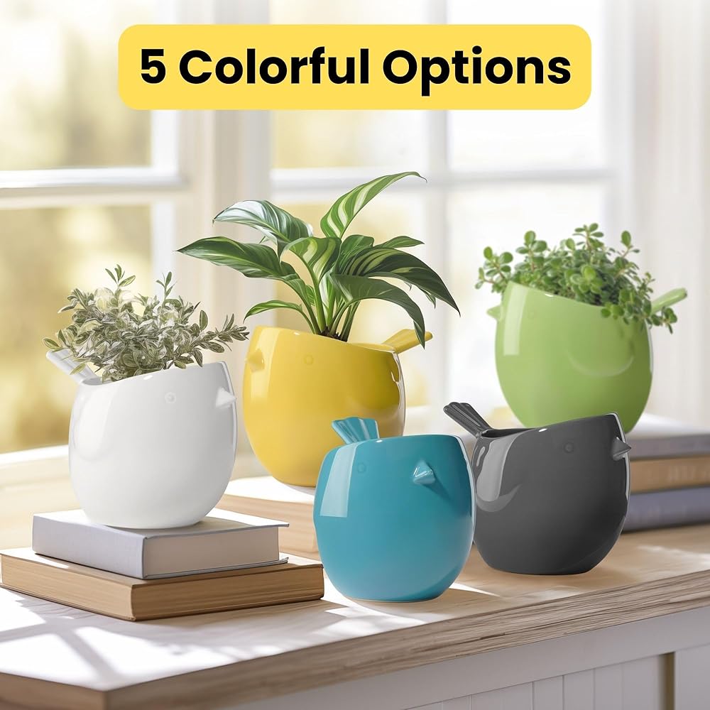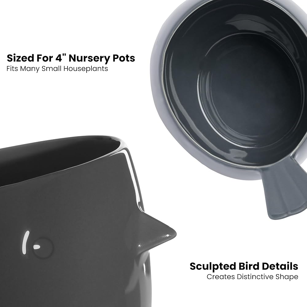TEAL CERAMIC POTS FOR PLANTS: Give your desktop plants a happy and fun home with our Finch Bird-Shaped Small Pots for Plants. This colorful collection of small planters for indoor plants is easy to decorate and adds a bright pop of color that brightens up any space! Each of these small flower pots measure 7"W x 5"D x 5"H and is sized for plants inside 4 inch nursery pots
