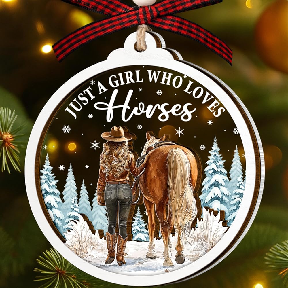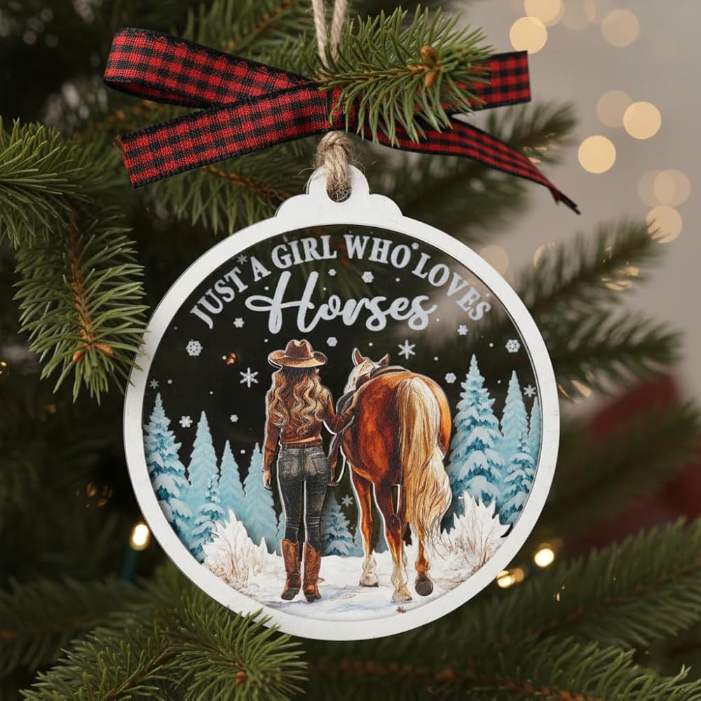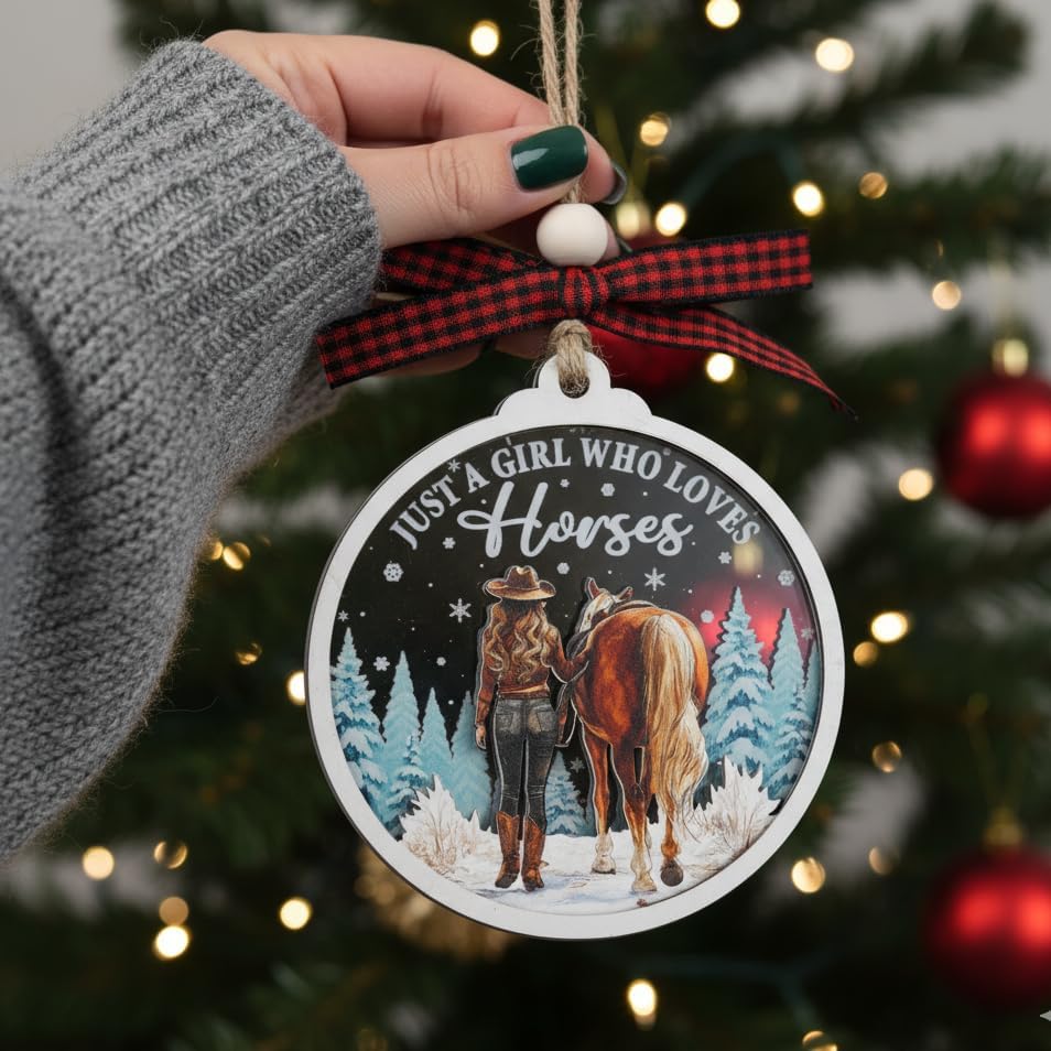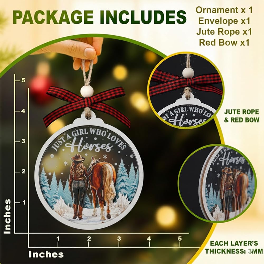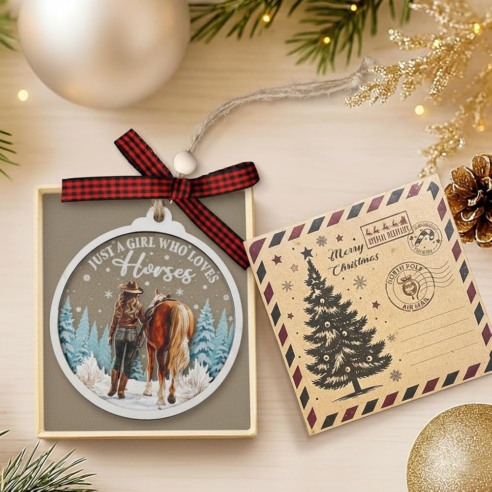 زينة الحصان لشجرة عيد الميلاد، زخرفة الألومنيوم لشجرة عيد الميلاد للحصان (ليست ثلاثية الأبعاد)، زينة عيد الميلاد في المزرعة 2023 لمحبي الخيول، والفروسية، وراكب الخيل، والمزارع