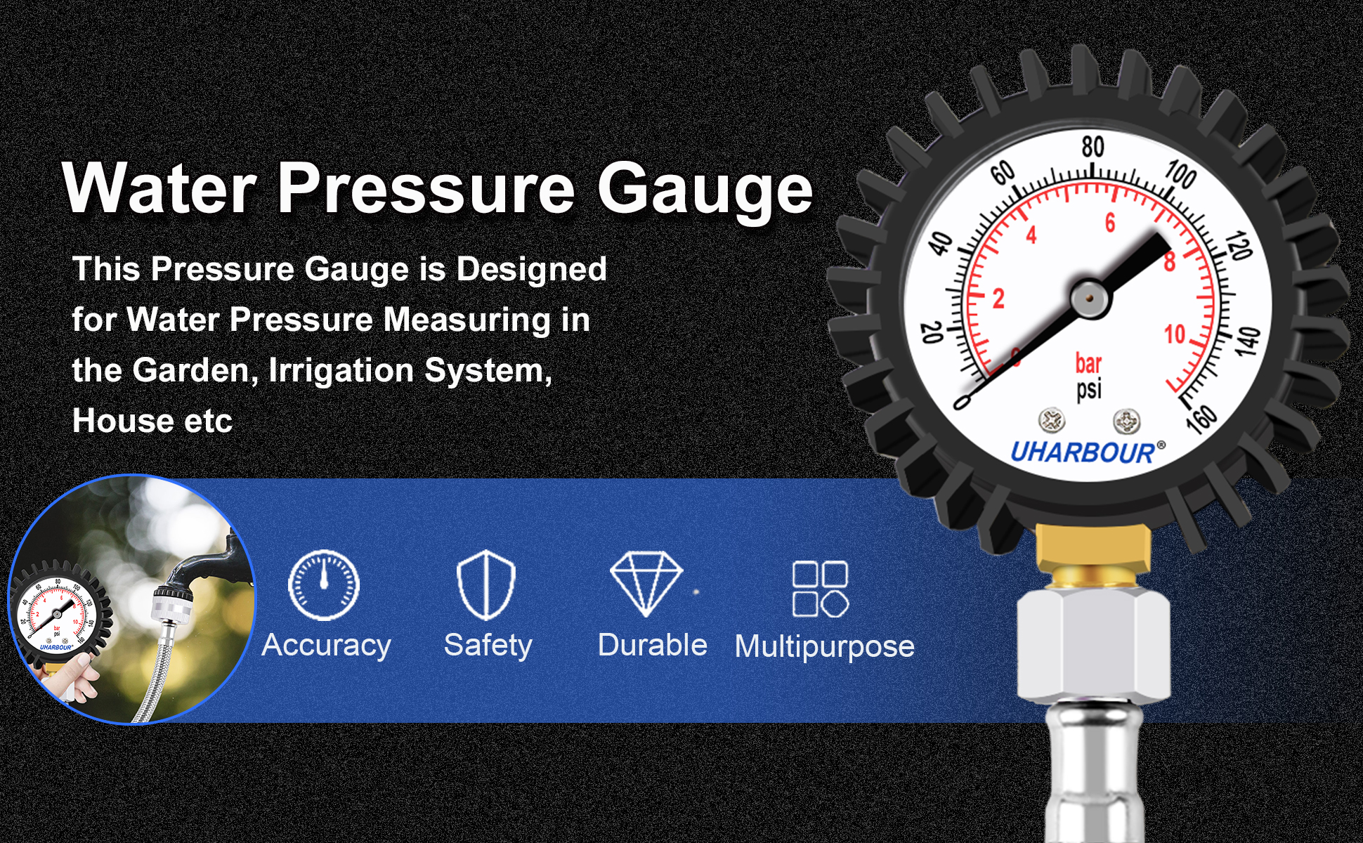 مراقبة دقيقة للضغط: مع قرص كبير مقاس 2 بوصة، يوفر مقياس ضغط المياه هذا قراءات دقيقة وسهلة القراءة، حتى تتمكن من مراقبة مستويات ضغط المياه عن كثب. سواء كنت قلقًا بشأن تدفق المياه في الأنابيب الخاصة بك، الأجهزة، أو نظام الري، هذا المقياس يغطي احتياجاتك.