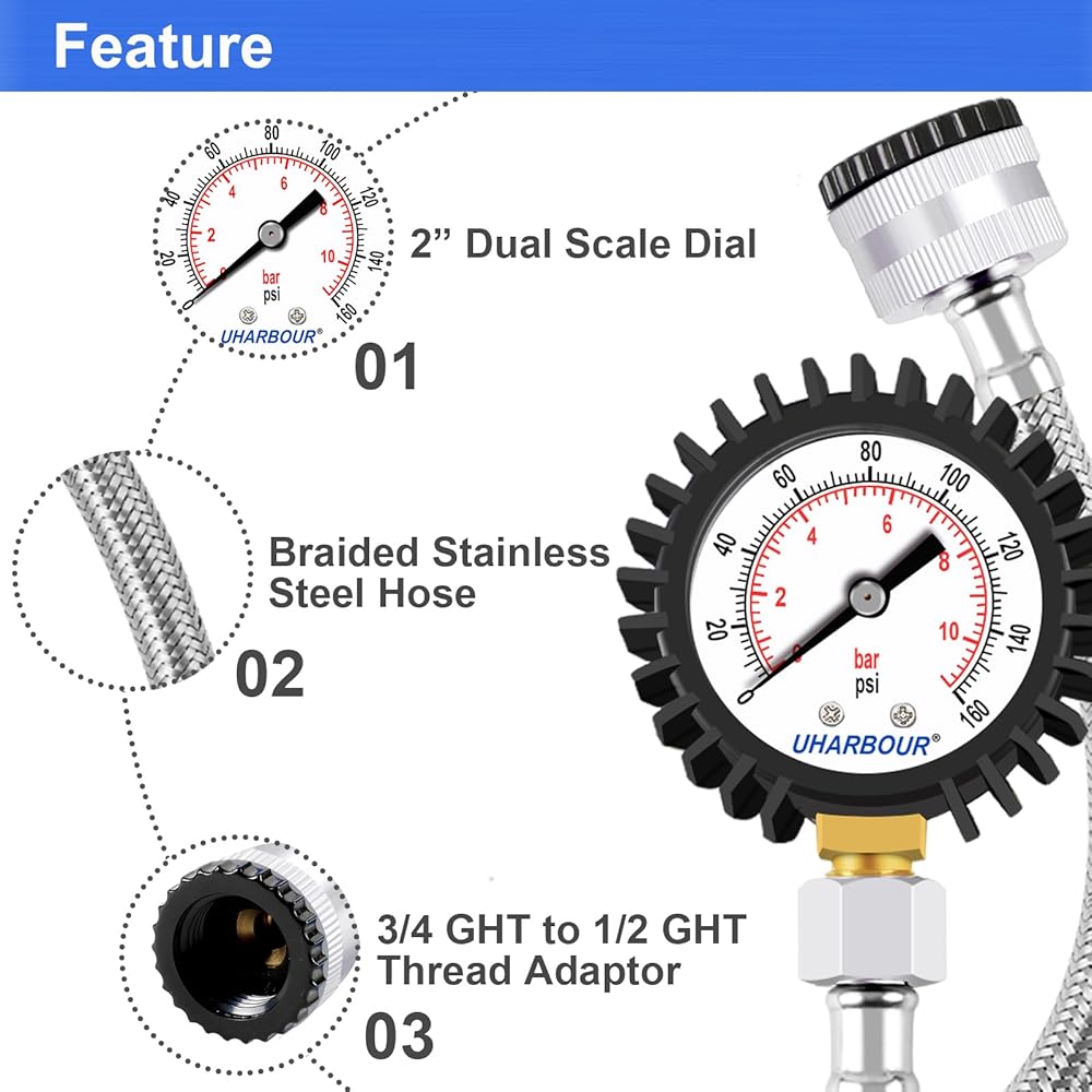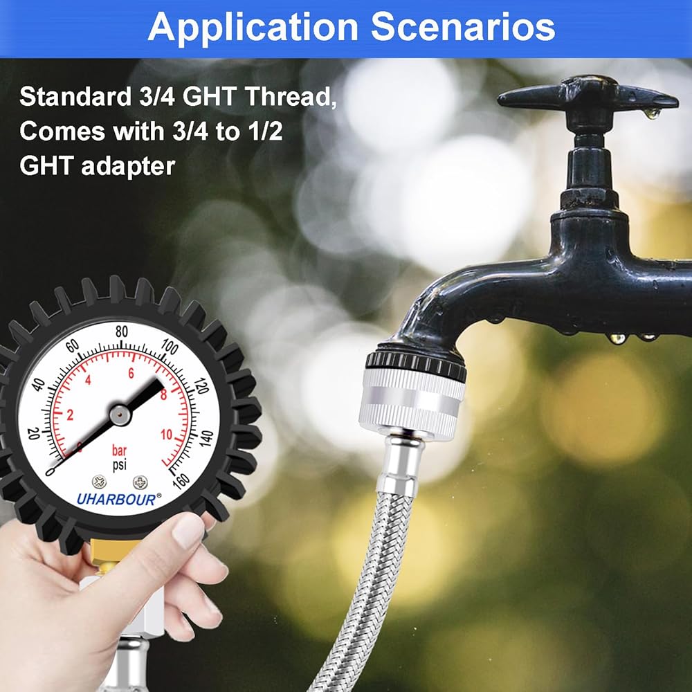 سهولة التركيب: تركيب مقياس ضغط المياه الخاص بنا أمر سهل. يتميز بوصلة GHT مقاس 3/4 بوصة، مما يسمح لك بتوصيله بنظام السباكة الخاص بك بسرعة وأمان. لا يتطلب أدوات أو مهارات متخصصة.