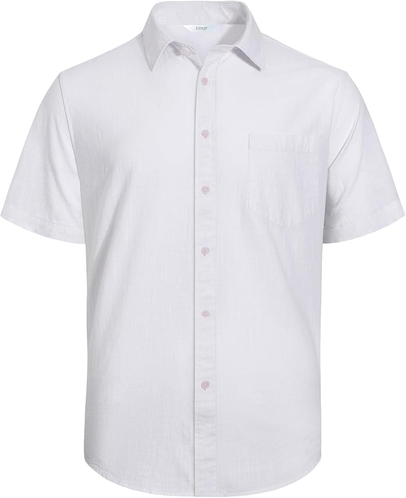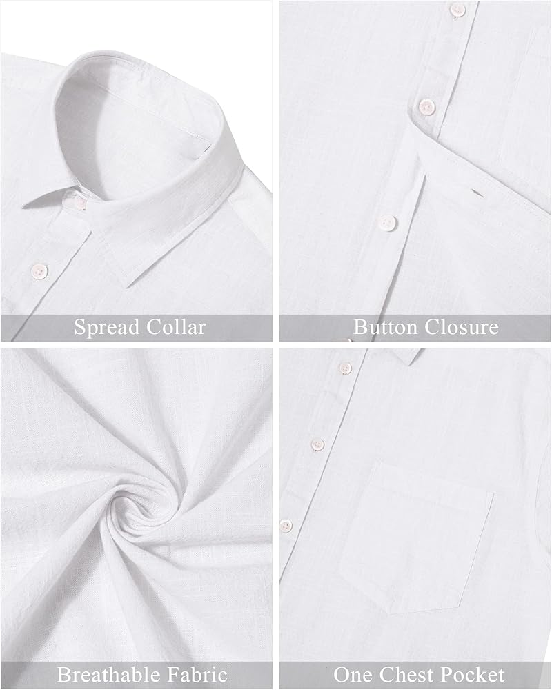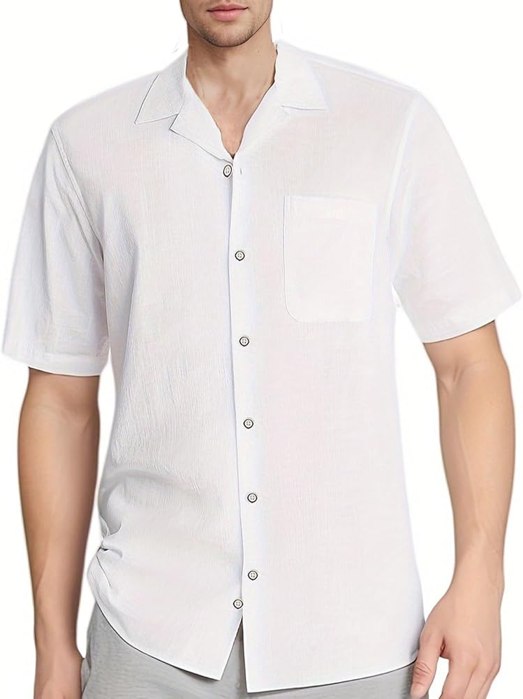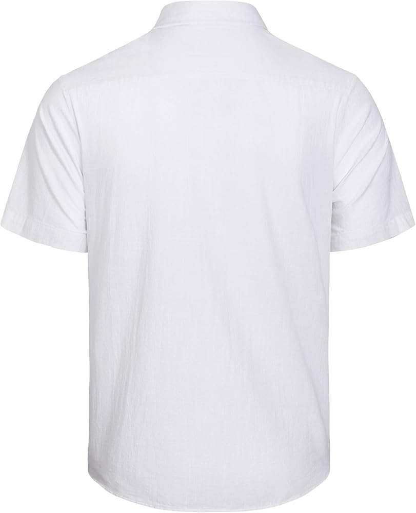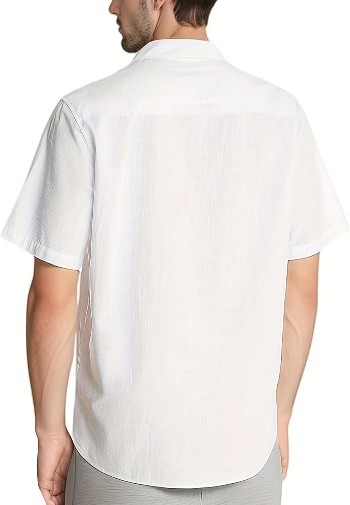 القماش --- القميص الكاجوال قصير الأكمام مصنوع من نسيج القطن والكتان عالي الجودة مع معالجة مضادة للانكماش، ناعم ومريح، سهل الكي، خفيف الوزن ورائع، تهوية جيدة، يزيل الحشو، ويمنحك شعورًا أفضل تجربة ارتداء.