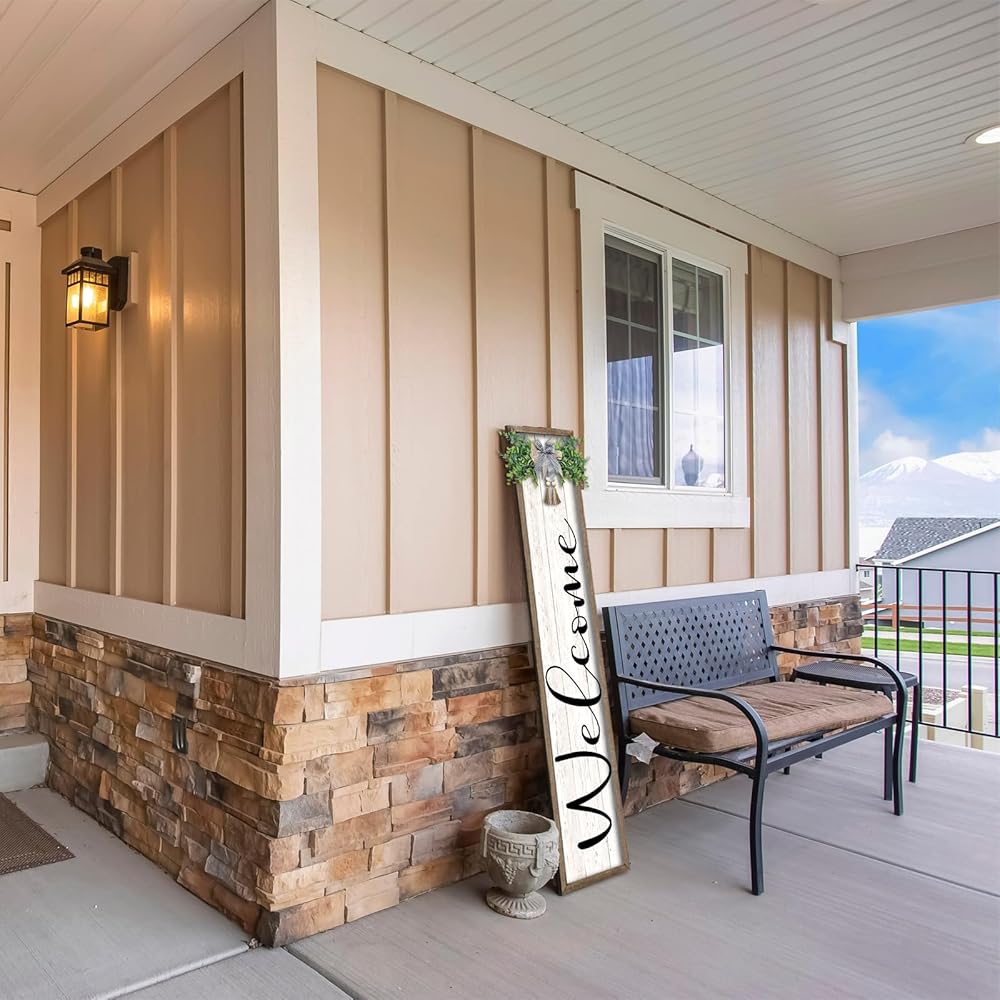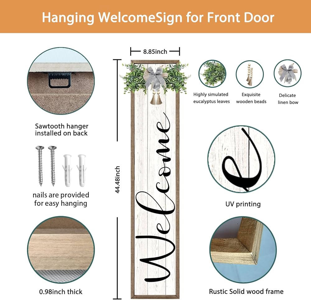 【حجم مثالي】: لافتة الترحيب بطول 45 بوصة وعرض 9 بوصة وسمك 1 بوصة وتزن 2.5 رطل. جاهزة للتعليق في أي مكان تريد أن يراه الضيوف في منزلك، مثل الشرفة والفناء والمداخل والمداخل والشرفات الأمامية والجدران وأي موقف واضح.