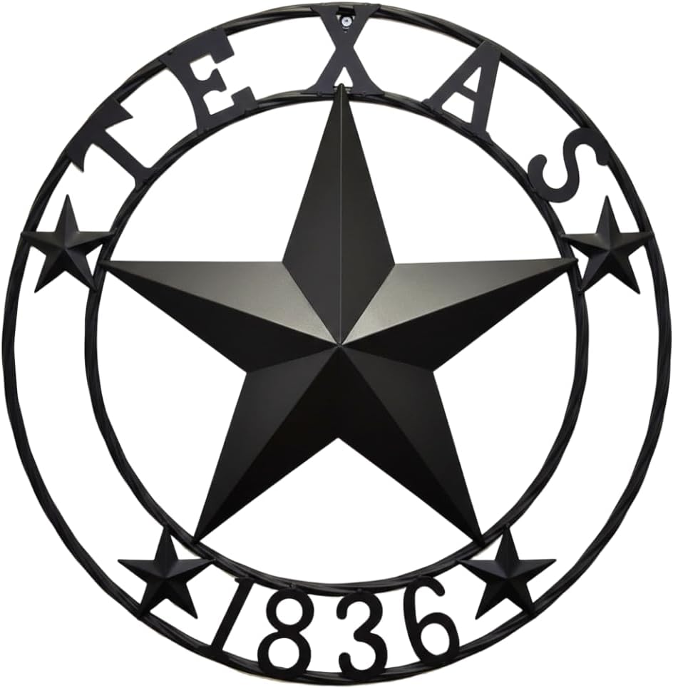 A Beautiful brand new Metal Craft TEXAS Barn Metal Star to add the perfect touch to your primitive country décor!! This magnificent wall décor star is a fun and unique way to declare your love for the houe warming, Ranch Home, Farmhouse, Lake House, Log Cabin, Farms, Ranch, Mom cave, Man cave, State, School, Community, Cowboys, Cowgirls, Country Western home decor, Boldly styled and richly detailed in Rustic Bronze finish metal craft. The center & outer circle have a rope look. Nightclawing farmshop Barn Star are nicely distressed and have a hole at the top for easy display. Great for indoor & outdoor Home Garden. Perfect gift for any ocassions. Excellent Condition. Brand new. Handmade Craft.
