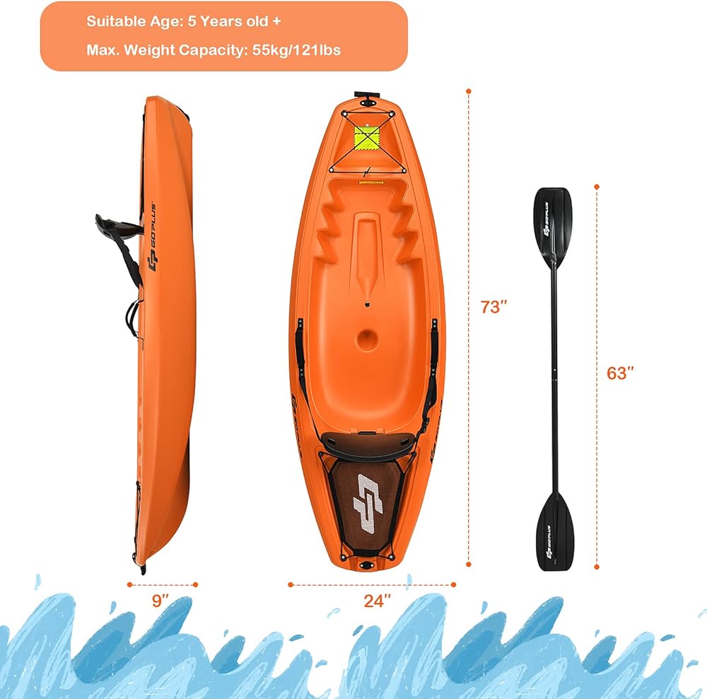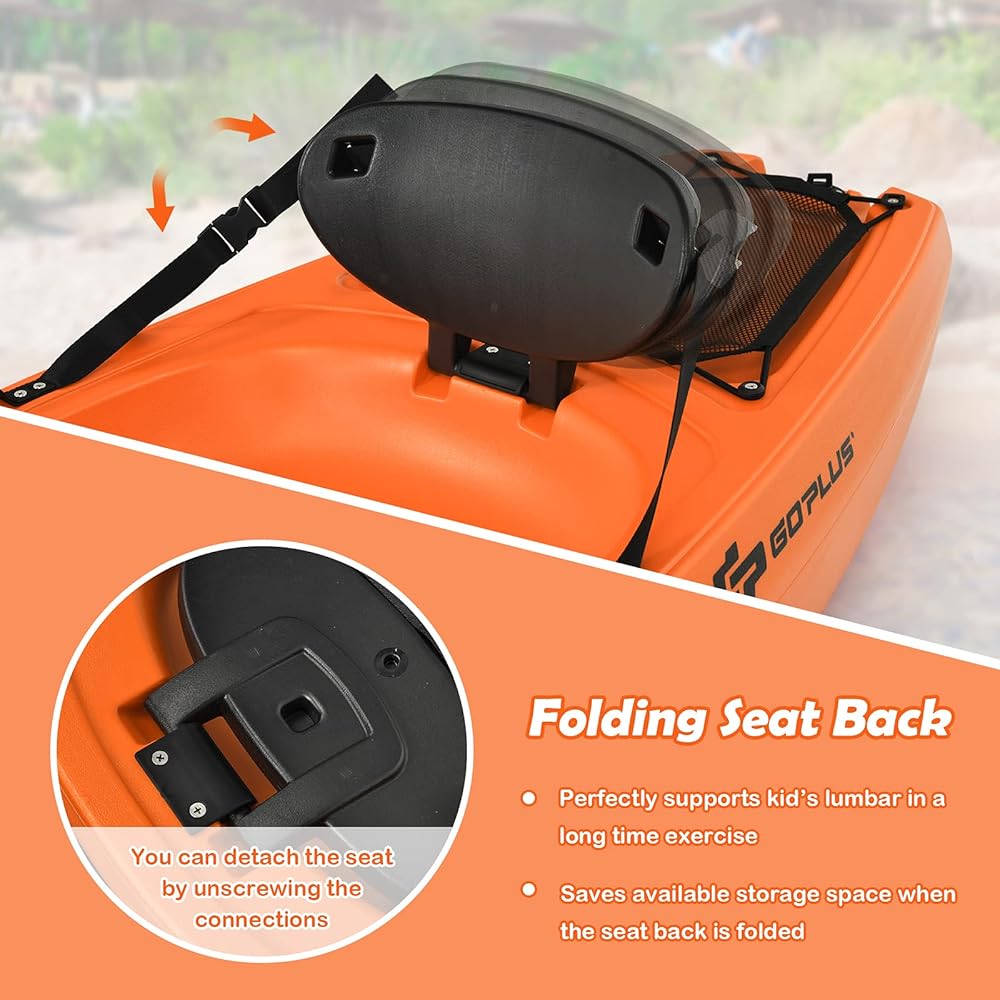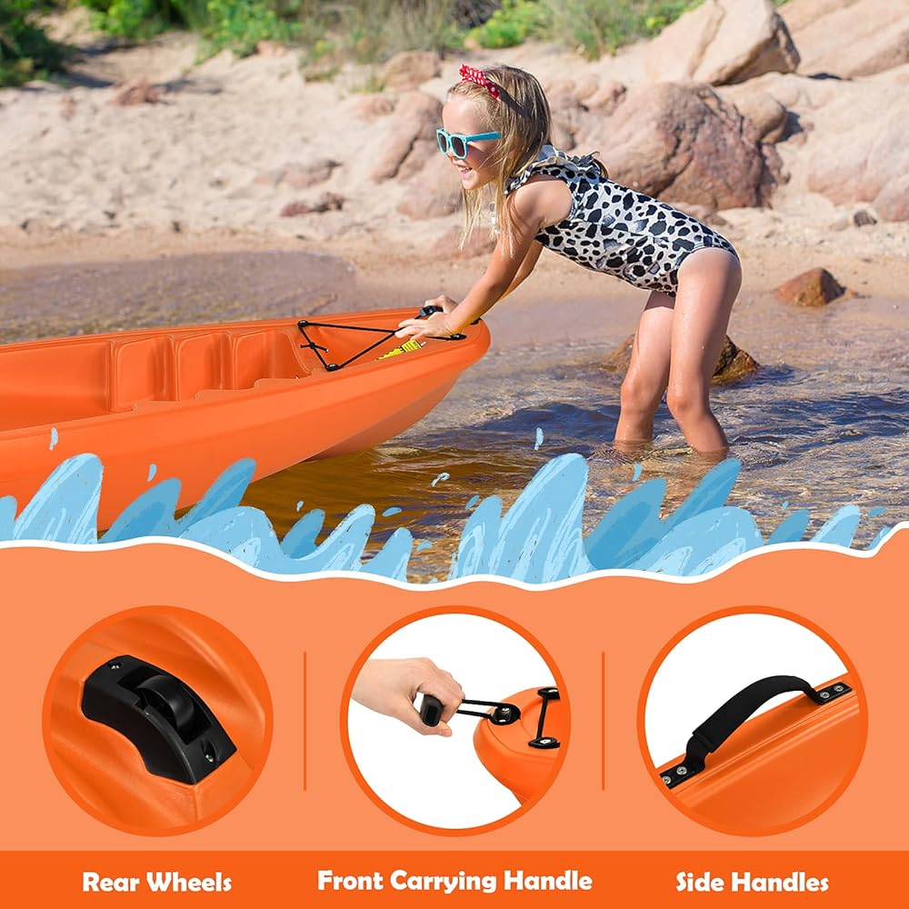 Our 6ft sit-on-top youth kayak is highly functional for your kid to surf and track. Made of durable HDPE materials that are odorless, kid-friendly, weather-resistant, and wear-resistant, this touring youth kayak can be used for a long time. In addition, the kayak comes with a 4-position footrest, a foldable backrest, and large storage space for providing your kid with a gleeful tour in leisure time. What's more, it comes with 2 rear casters, 2 side handles, and a front carrying handle for easy moving and transporting. With a bonus double paddle, paddlers are ready to hit the water right away!