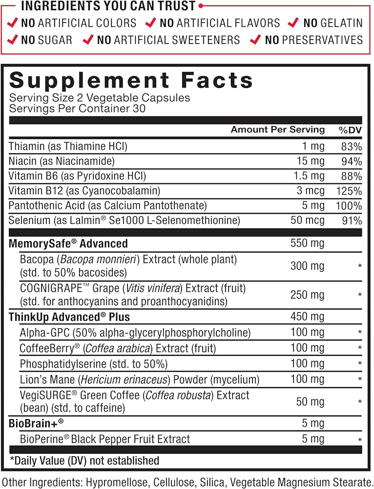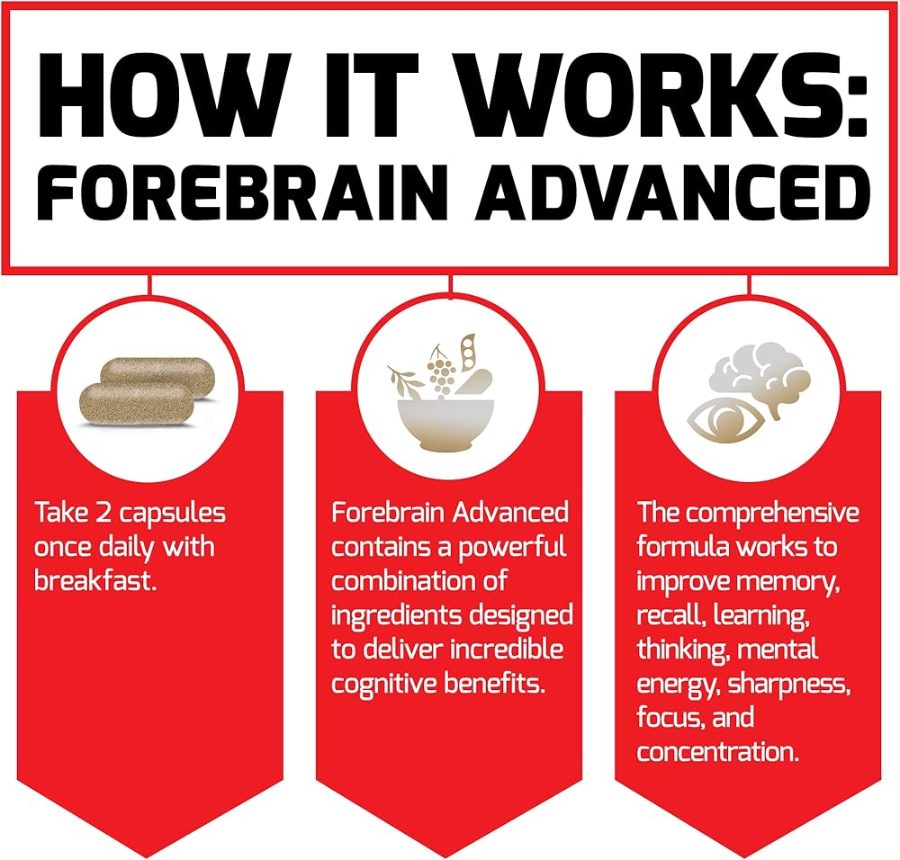 FOR YOUR BEST BRAIN As we age, our physical and mental performance naturally decline. It's inevitable. But modern science can help us address these deficits and maintain our edge. For many, ensuring peak brain health is a priority. It is disconcerting to feel foggy and forgetful, especially as you have more time to enjoy friends, family, hobbies, and travel. Forebrain Advanced can help you achieve better cognitive performance, with intelligent ingredients clinically studied to optimize mental acuity. Compelling scientific research suggests COGNIGRAPE may work to significantly improve memory and recall, while other compounds address learning, thinking, mental energy, sharpness, focus, clarity, and concentration – all indicators of optimal brain function. Together, the MemorySafe Advanced, ThinkUp Advanced Plus, and BioBrain+ blends work to deliver incredible cognitive health benefits. This safe and effective formula harnesses the most advanced neuroscience to help you achieve your best brain and Unleash Your Potential.