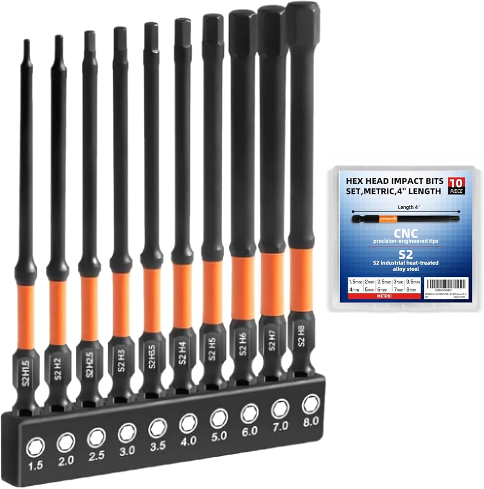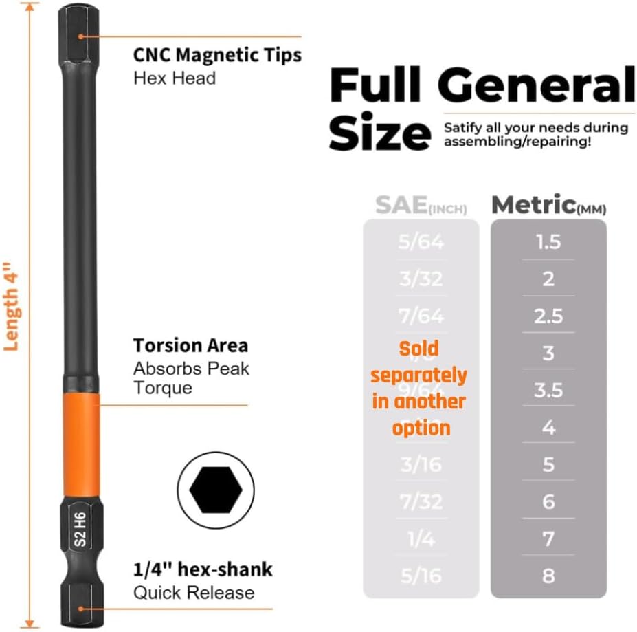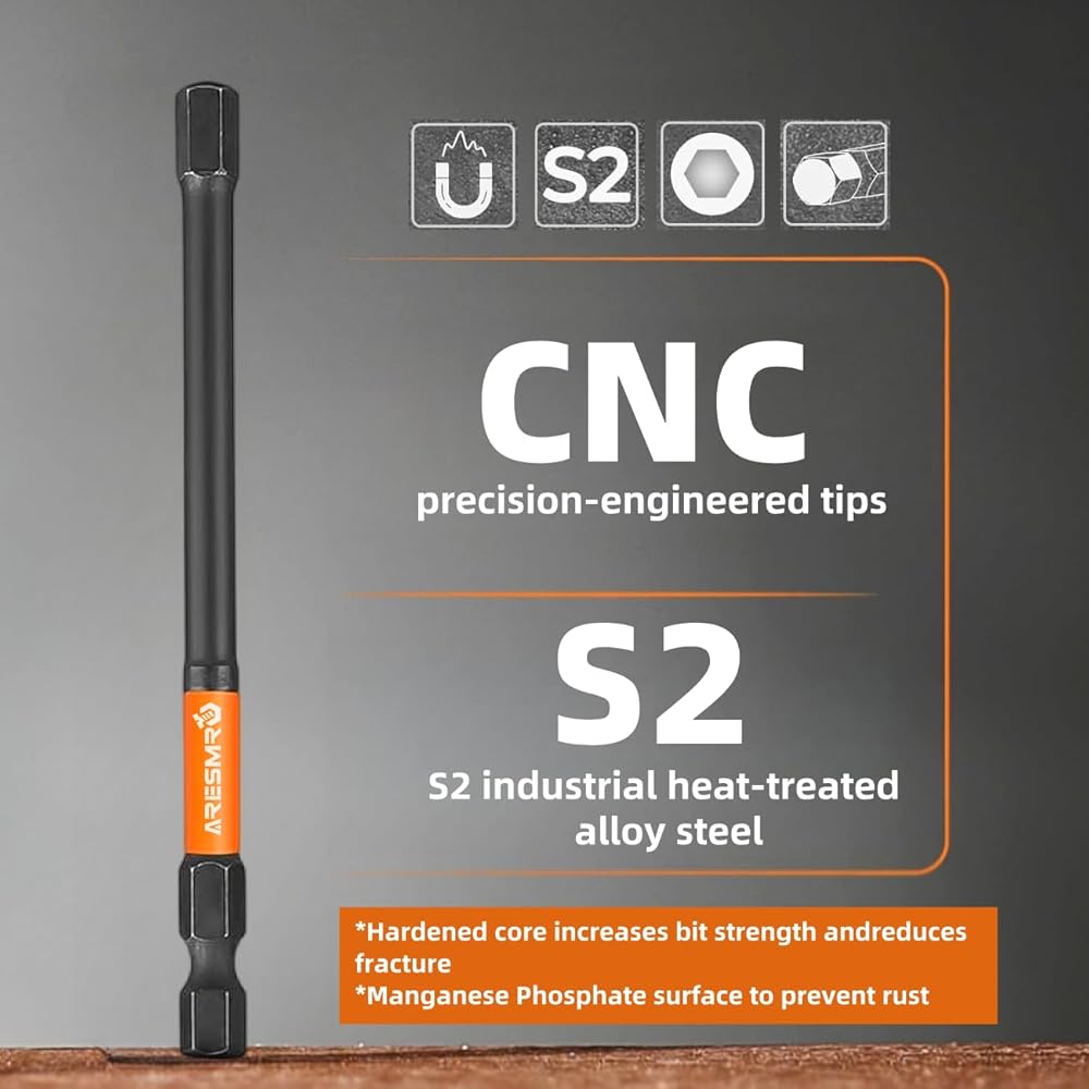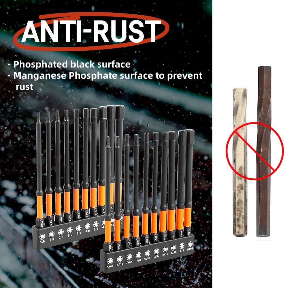 ARESMRO Impact Hex Head Allen Wrench Drill Bit Set 20pcs (Metric&SAE), 1/4” Hex-Shank S2 Steel Hex Bits Set, CNC Machined Tips with Magnetism, 3” Long...